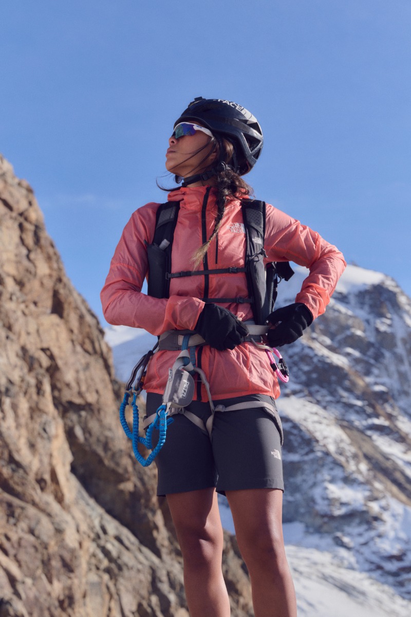 La inspiración directa de esta nueva cápsula de The North Face viene de su película Nevia, la historia del icónico atleta Sam Anthamatten y la conquista de su pico soñado. El visual sigue el proceso de ascenso y descenso del Obergabelhorn a través de las distintas habilidades de Sam. ¿Qué tiene de especial? Pues él llegó a la cara principal de la montaña en parapente, caminó hasta la cima y descendió esquiando. Una vez agotada la nieve, cogió otra vez su parapente y regresó a la civilización. Suena a un proceso herculino, pero todo se hace un poco más fácil con la equipación correcta (que estaba pensada para este enfoque multideportivo).