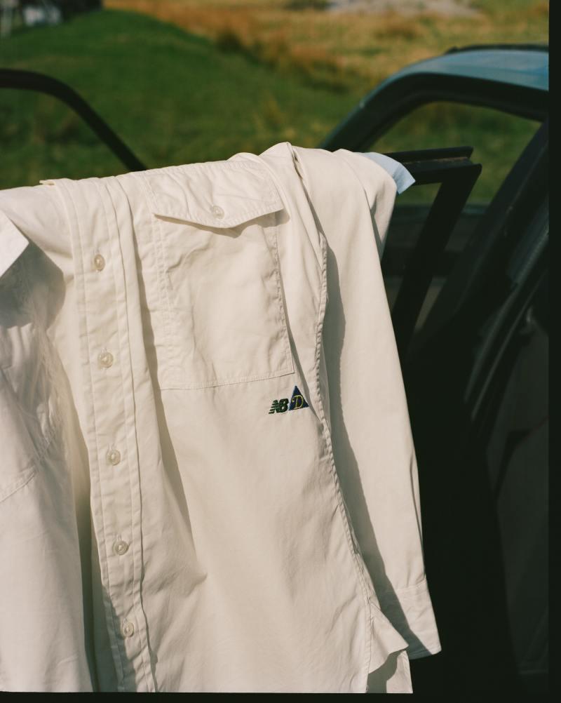 Pero bien, hablemos de la ropa de Drake’s X New Balance. El armario abre con una americana de lona encerada pensada para sofisticación en outdoors; y a juego tenemos pantalones para el total look. El estilo british sigue con polos de rugby en colorblocking retro, sobrecamisas con bolsillos, una camisa plegable. Y, como piezas de alta función, una parka y un chaleco en nylon rip-stop japonés. Esto se complementa de sudaderas y camisetas cobrandeadas… pero la estrella es la nueva silueta Allerdale.
