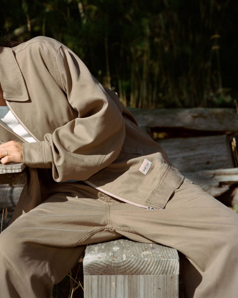 Y tanto así, que esta nueva entrega de otoño 2024 marca la octava vez que unen fuerzas. Para esta entrega, se toma una inspiración de la indumentaria de trabajo más típica de todas; pero se eleva a través de siluetas más actualizadas y materiales provenientes de excedentes de fabricación. Es upcycled workwear; sin rayar en lo mismo de siempre.