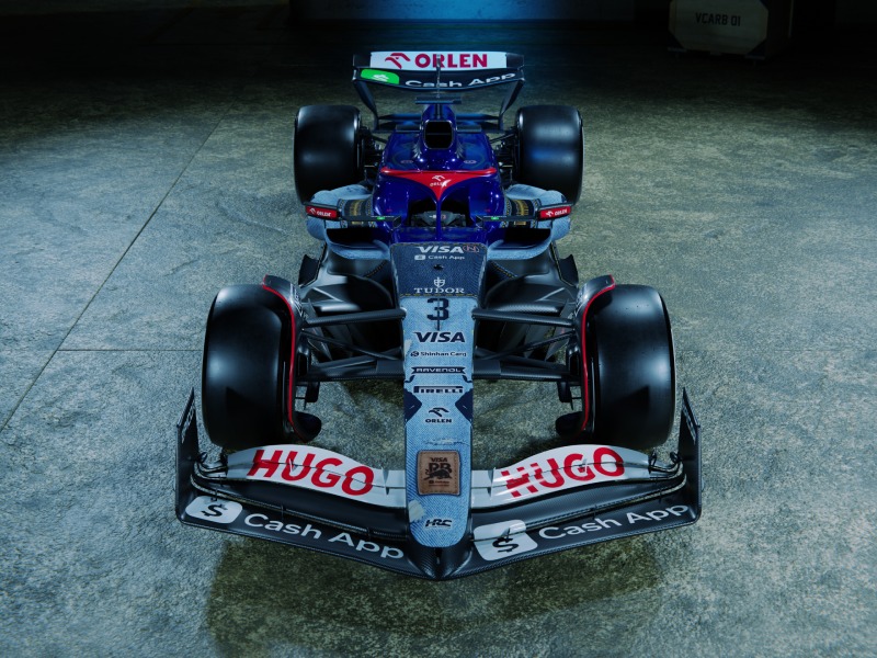 La colaboración de Hugo X RB debutó para el GP de Singapur un nuevo rotulado para su coche monoplaza. El diseño, cargado de branding de patrocinadores y todo lo típico, rompe con los esquemas presentando una partes inspiradas en el denim, uno de los pilares de la nueva identidad de la marca.