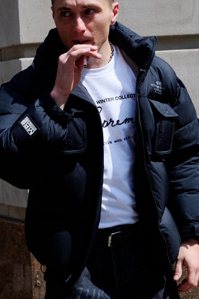 La colección colaborativa de Supreme X Martine Rose se compone de un repertorio completo de ropa, calzado y accesorios… por lo que tenemos bastante de donde elegir para fichar nuestra próxima statement piece urbana de otoño. Como siempre, esta cápsula abre con sus piezas de outerwear. Para los días más fríos, tenemos un abrigo puffer de construcción colorblock con bolsillos utilitarios en el pecho y logotipos retro y deportivos en el dorsal.