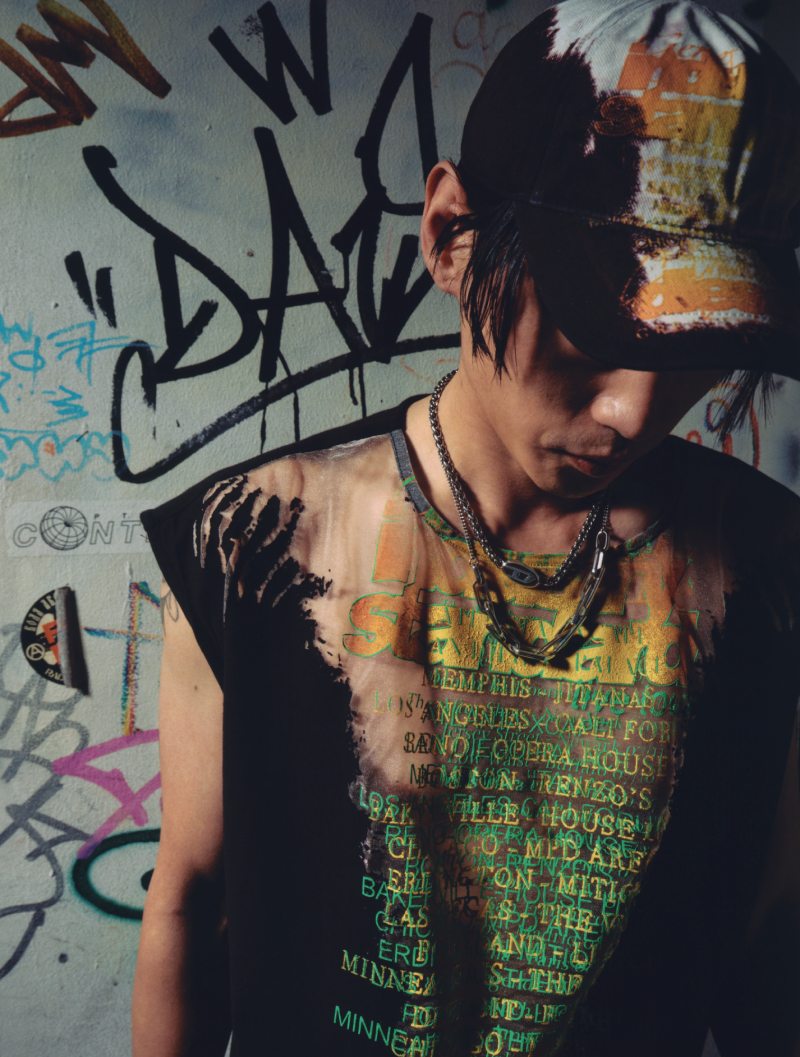 Redoblando en esta idea de prendas transparentes con capas internas, la cápsula Remaster de Diesel X Nts presenta también faldas cortas con biker shorts internos, igual con exterior de sheer estampado y camisetas de corte baby. Las faldas midi, por su parte, presentan acabados en devoré más complejos. Para chico, tenemos más camisetas con fechas de gira y acabados de aerógrafo (y guiños de esética híper dosmilera), jorts, muslce tees, y camis de tirantes. Y, como cierre de oro, una chaqueta track de nylon; igualmente con detalles gráficos dosmileros.