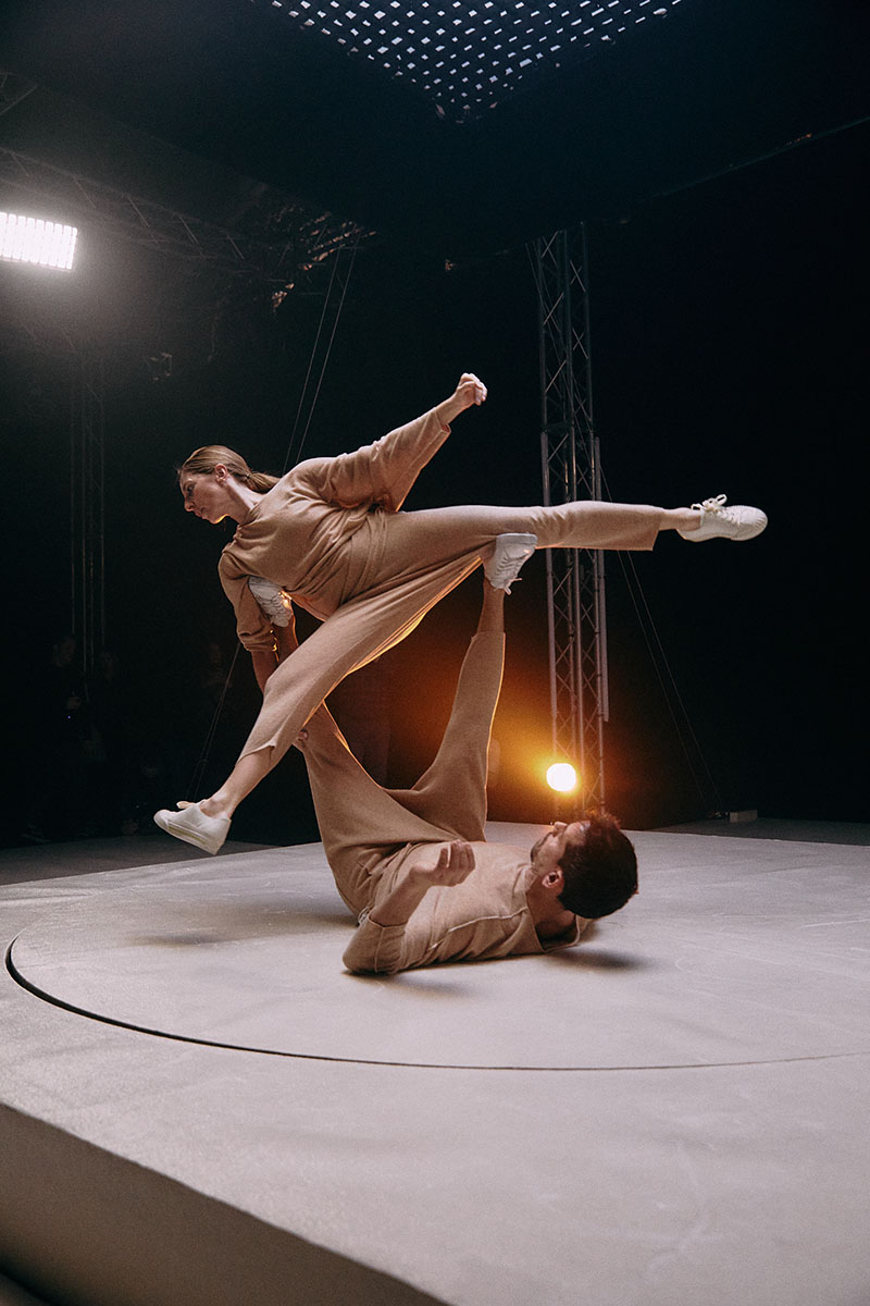 En lugar de un desfile sin más, la presentación de la nueva colección de Adolfo Domínguez comenzó con una serie de interpretaciones artísticas llenas de encanto. Hubo un poco de todo: moda, música y performances en directo de butoh (danza contemporánea japonesa) o incluso una actuación de Abraham Cupeiro.