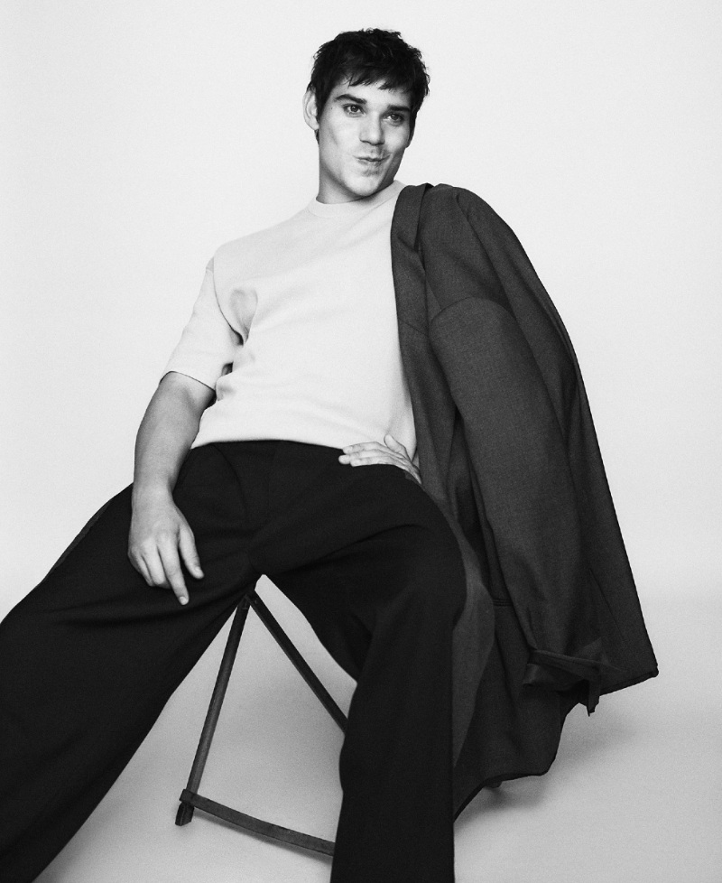 César Vicente es la imagen de la colección SS25 de Adolfo Domínguez, Renacer. El actor personifica el concepto de los nuevos diseños, que juegan con la ambigüedad de los cánones de la moda.