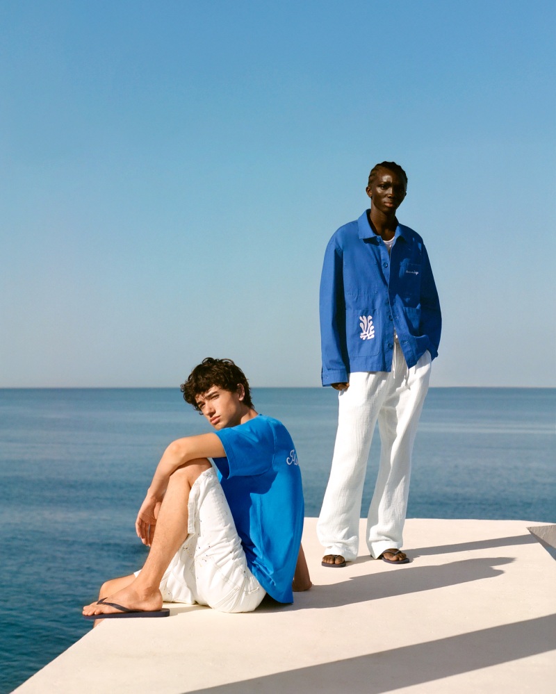 La cápsula colaborativa de Pull&Bear X Matisse abre son su repertorio de outerwear. Aquí, destaca una sobrecamisa-bata de pintor en algodón azul resaltada por detalles en blanco. En la También tenemos una sudadera blanca con la firma del artista decorando el frontal. En el lado más playero, la colección destaca un conjunto de camisa y bermuda de lino blancas, decoradas con ribetes en azul de aire súper clásico.