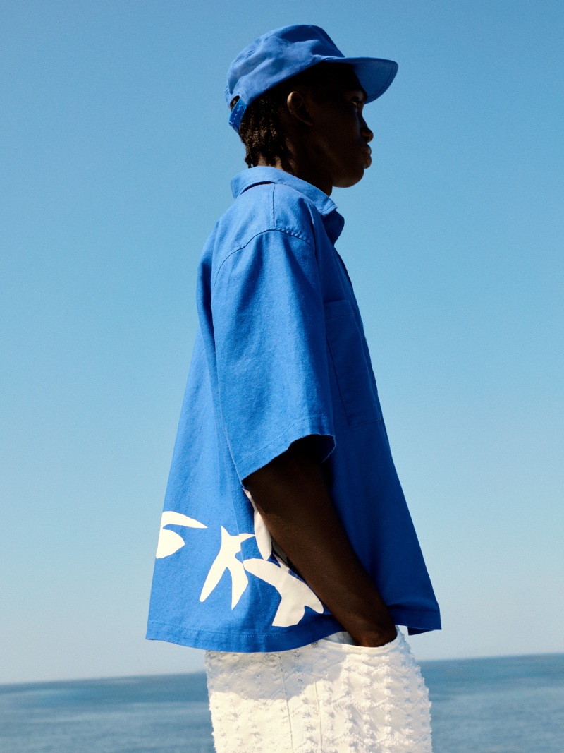 ¿De qué va esta cápsula? Pues la estética general es streetwear de verano en clave mediterránea. Sobre una base azul intenso, se dispone el arte de Matisse (particularmente motifs vegetales de su etapa de collage) en un repertorio completo de piezas que van a suplir todas las necesidades de la temporada.