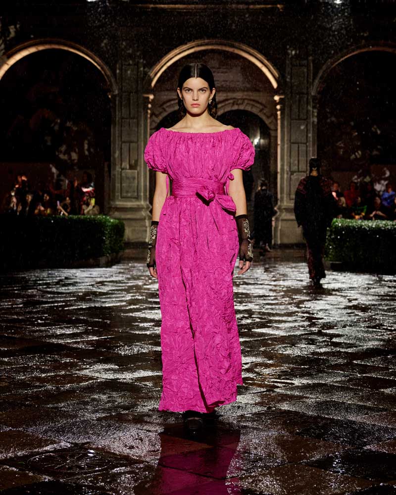 El rosa mexicano fue uno de los puntos más fuertes y visuales de la nueva colección crucero de Dior. Se trata de un tono de rosa creado a partir de los colores del árbol de bugambilla concebido por Ramón Valdiosera para poner la moda mexicana en los escenarios internacionales. Este color también pinta el vestido inspirado en uno de los autorretratos de Frida Kahlo, además de otras piezas claves de la colección.