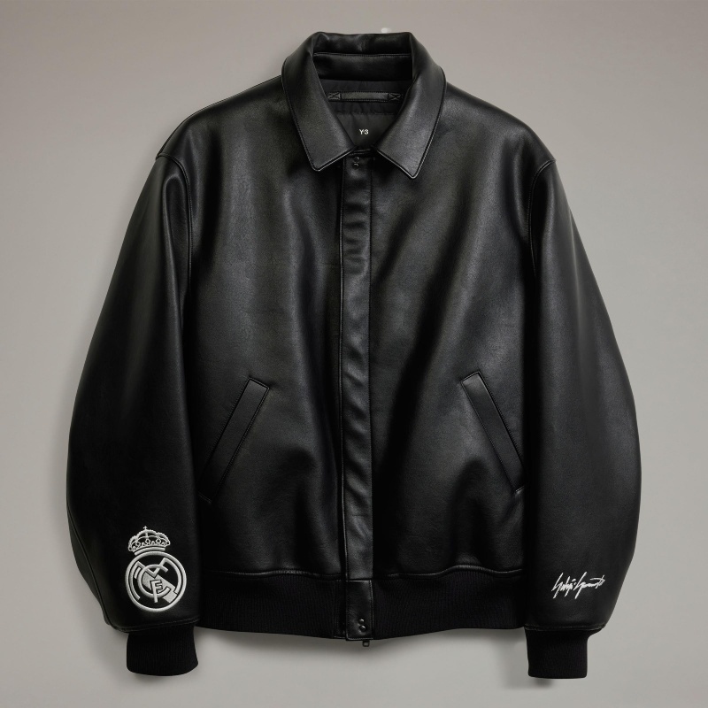 La nueva colección de Y-3 X Real Madrid abre con su statement piece por excelencia: una cazadora de cuero vegano. La prenda, de corte oversize y relajado, presenta un cuello camisero y se acentúa con el escudo del esquipo y la emblemática firma del diseñador en las mangas. El resto del armario se basa en mezclar sastrería con sportswear. Como piezas clave, tenemos un polo de punto técnico (con una versión de manga larga) y una cazadora estilo coach de nylon.