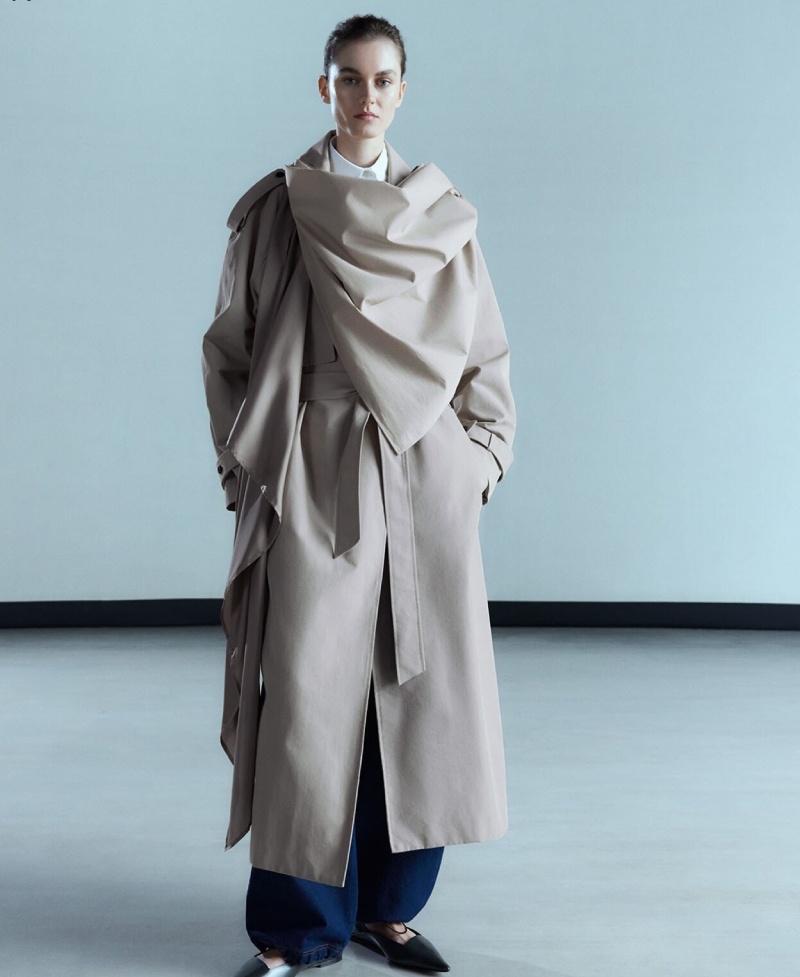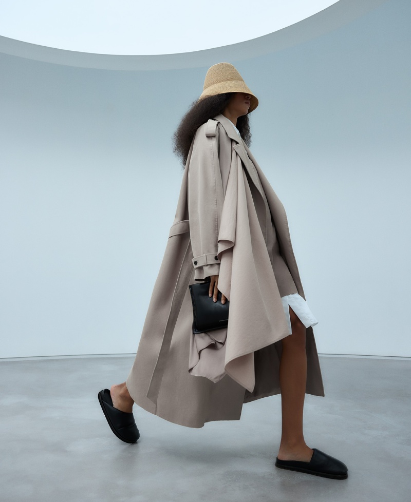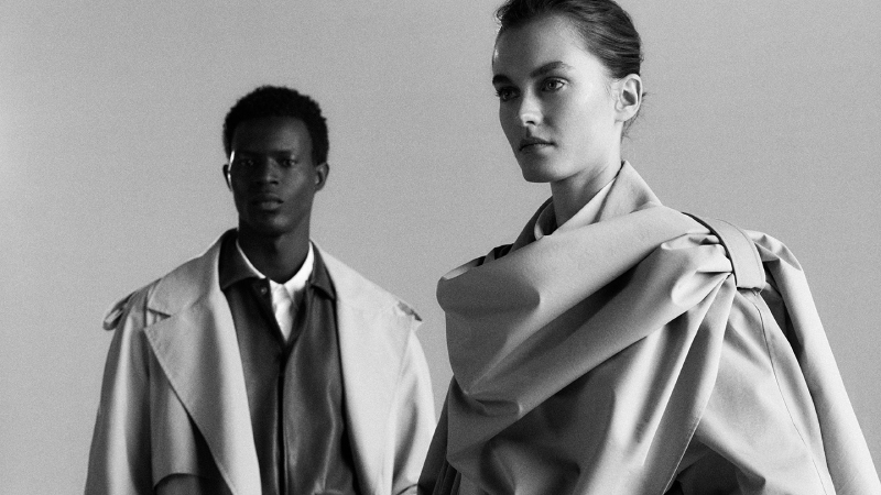 Abriendo la nueva colección de estilo neo clásico de Adolfo Domínguez, nos encontramos una selección de piezas de outerwear que refleja a la perfección este nuevo estudio de la silueta y el volumen. La icónica gabardina trench se deconstruye y vuelve a construir, con una silueta arquitectónica y drapeada para mujer. Para hombre, las sellas de identidad de la pieza se exageran y relajan, para adaptarla a un contexto más moderno. Las demás piezas de exterior de la propuesta se mantienen en la misma línea de cortes relajados y paletas neutrales.
