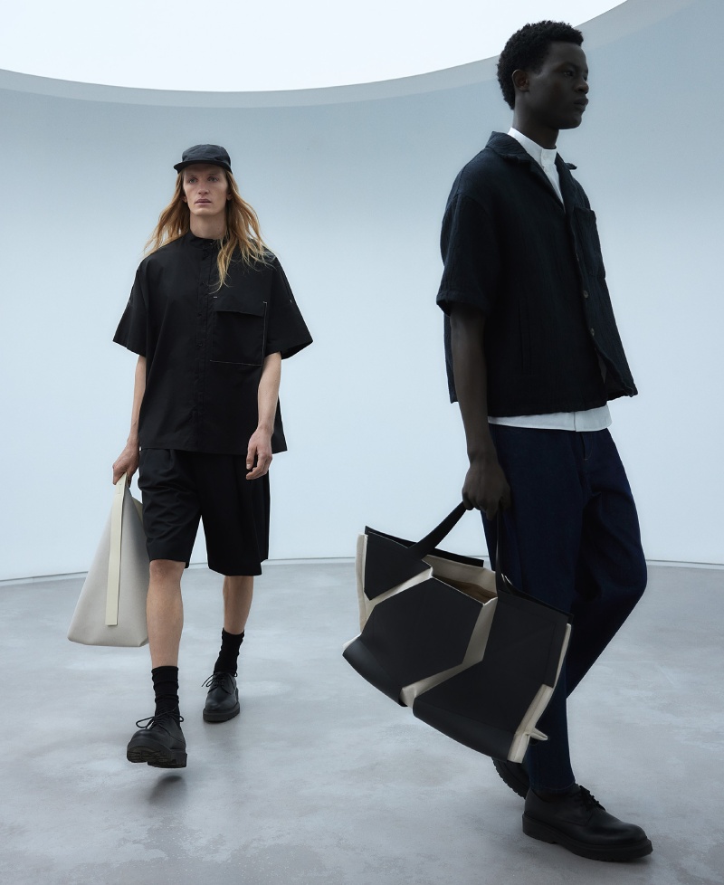 Cerrando la nueva propuesta de Adolfo Domínguez, nos encontramos con una selección de accesorios pensada para la vida cosmopolita. Sombreros de paja y gorras técnicas se complementan con bolsos de gran formato acabados en piel, que rebosan de un semblante ultra sobrio y minimalista gracias a sus construcciones de líneas simples.