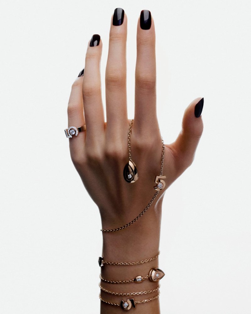 Para esta entrega, el estudio creativo de alta joyería de la Maison presenta una colección entera que toma las líneas del 5 como fuente de inspiración. Este lenguaje se divide en 3 familias, que brillan cada una por cuenta propia a través de las ornamentaciones más exquisitas y elevadas.