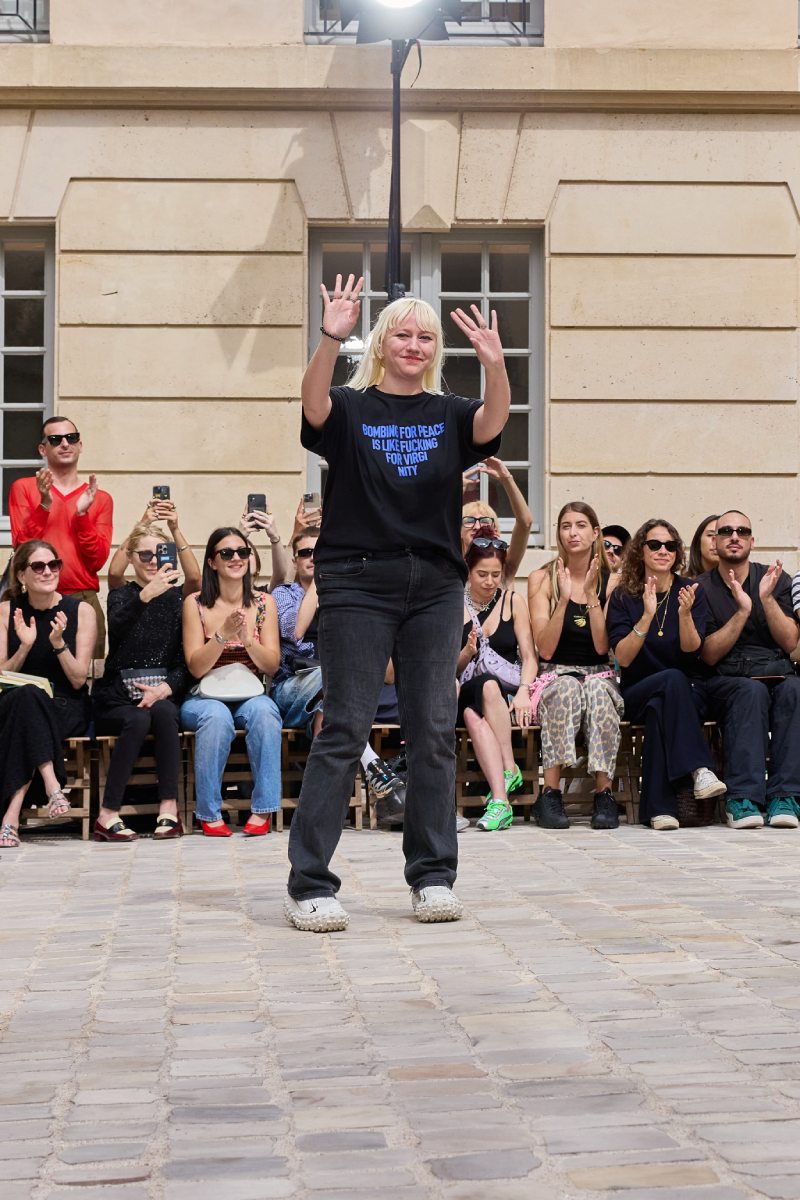 Jeanne Friot no es solo una diseñadora emergente de high street; es una de las grandes en proceso de cumplir su potencial. Ha trabajado (y estudiado) en casi todos lados, con puestos en Apc, Maison Kitsuné, Wanda Nylon… también trabajó unos años de estilista y fotógrafa; por lo que no es ninguna nepo baby ni ninguna enchufada. Y, luego de un tiempo bajo Demna en Balenciaga, funda su propia label en 2020 (a lo mejor es por eso que su obra se ve como se ve).