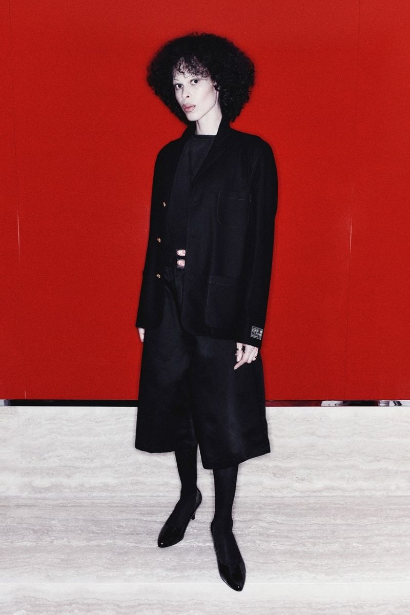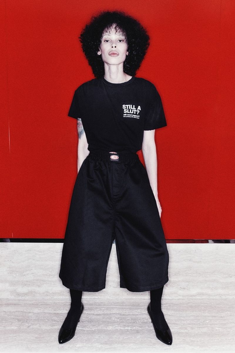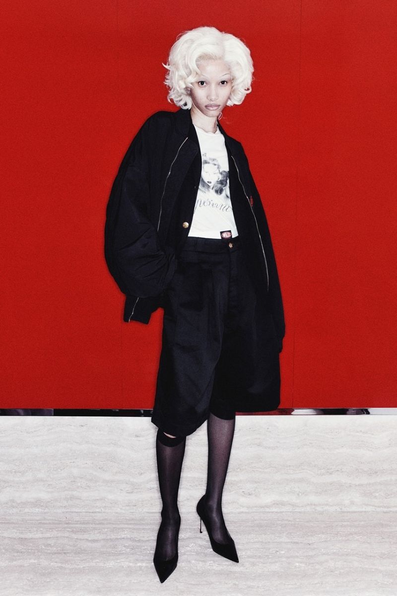 Pero bien, a grandes trazos ¿qué podemos encontrar en esta colección? Pues el primer capitulo de su colección ss25 reúne todos los tropes y elementos que definen su lenguaje a la perfección. Sastrería perfectamente cortada, contrastada con esenciales de workwear típico y sobreproporcionado. Así como también sportswear elevado y básicos del streetwear en sus distintivos cortes. Ah, y cómo no, una muy fuerte dosis de logotipos y referencias culturales como elementos gráficos.