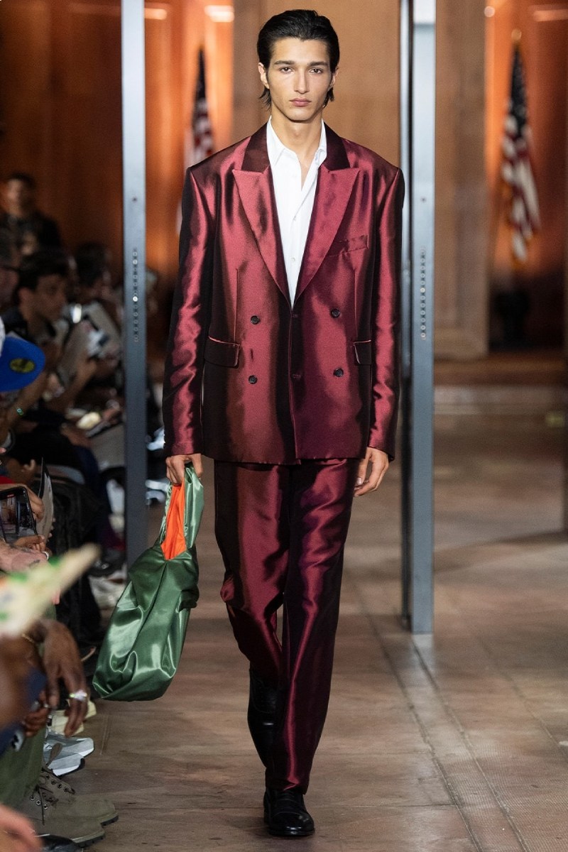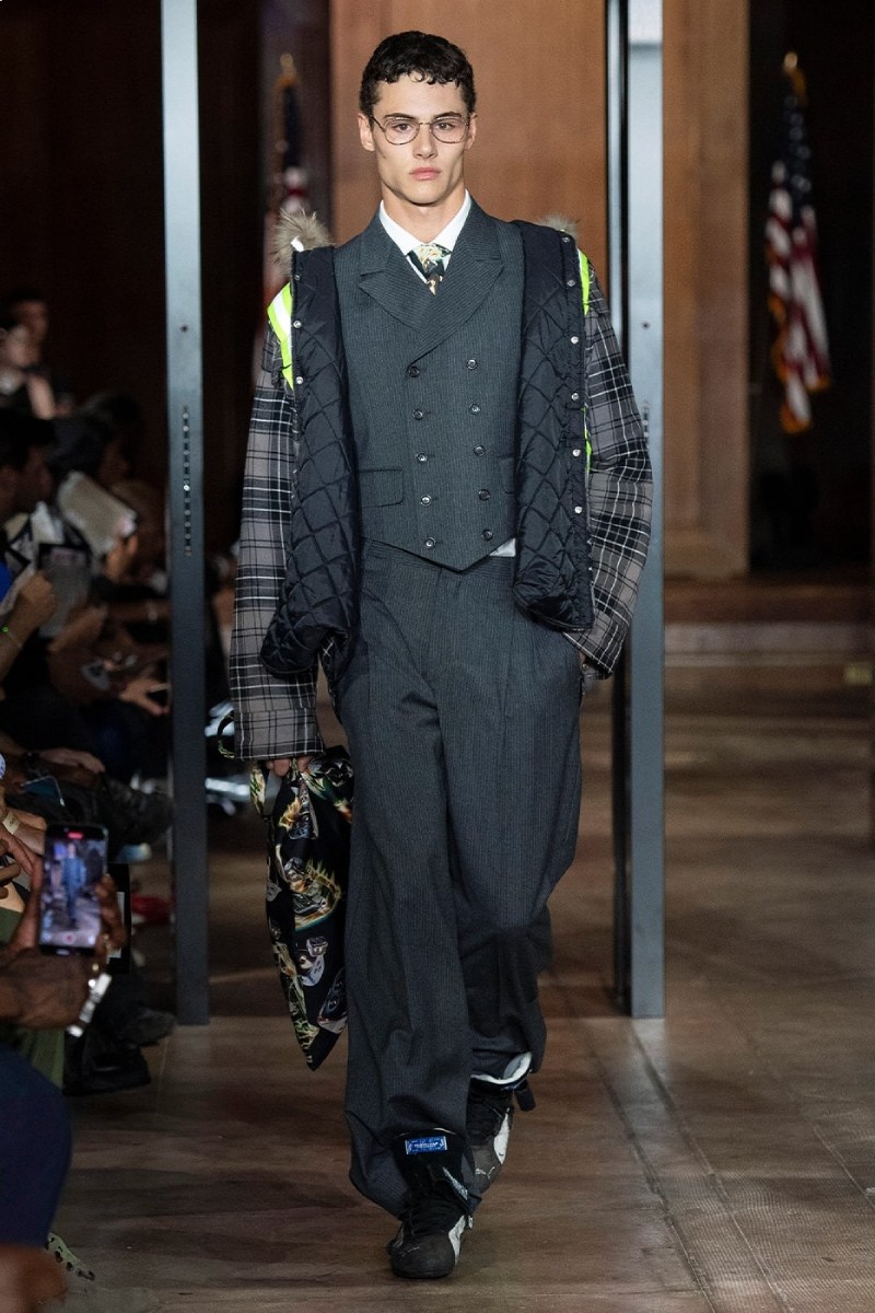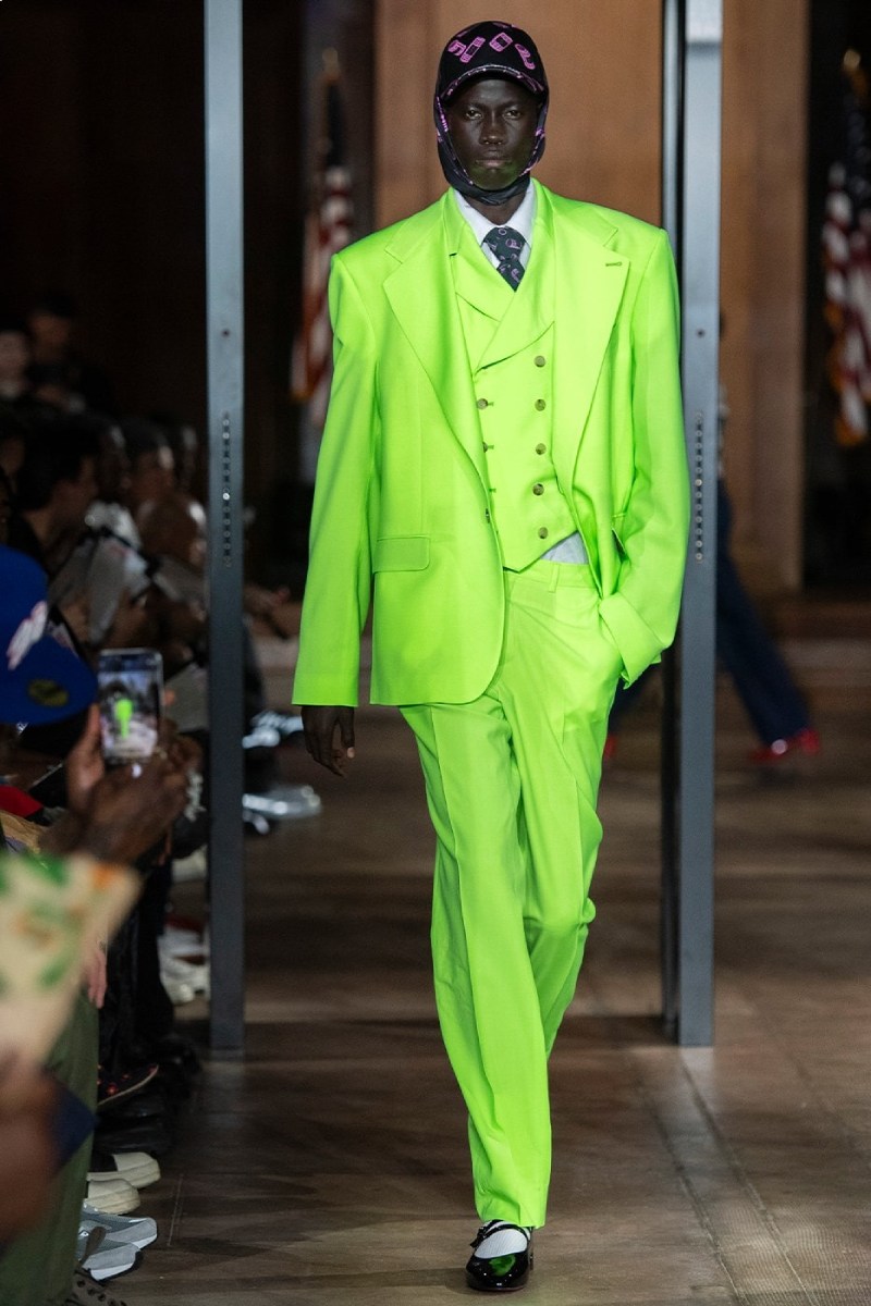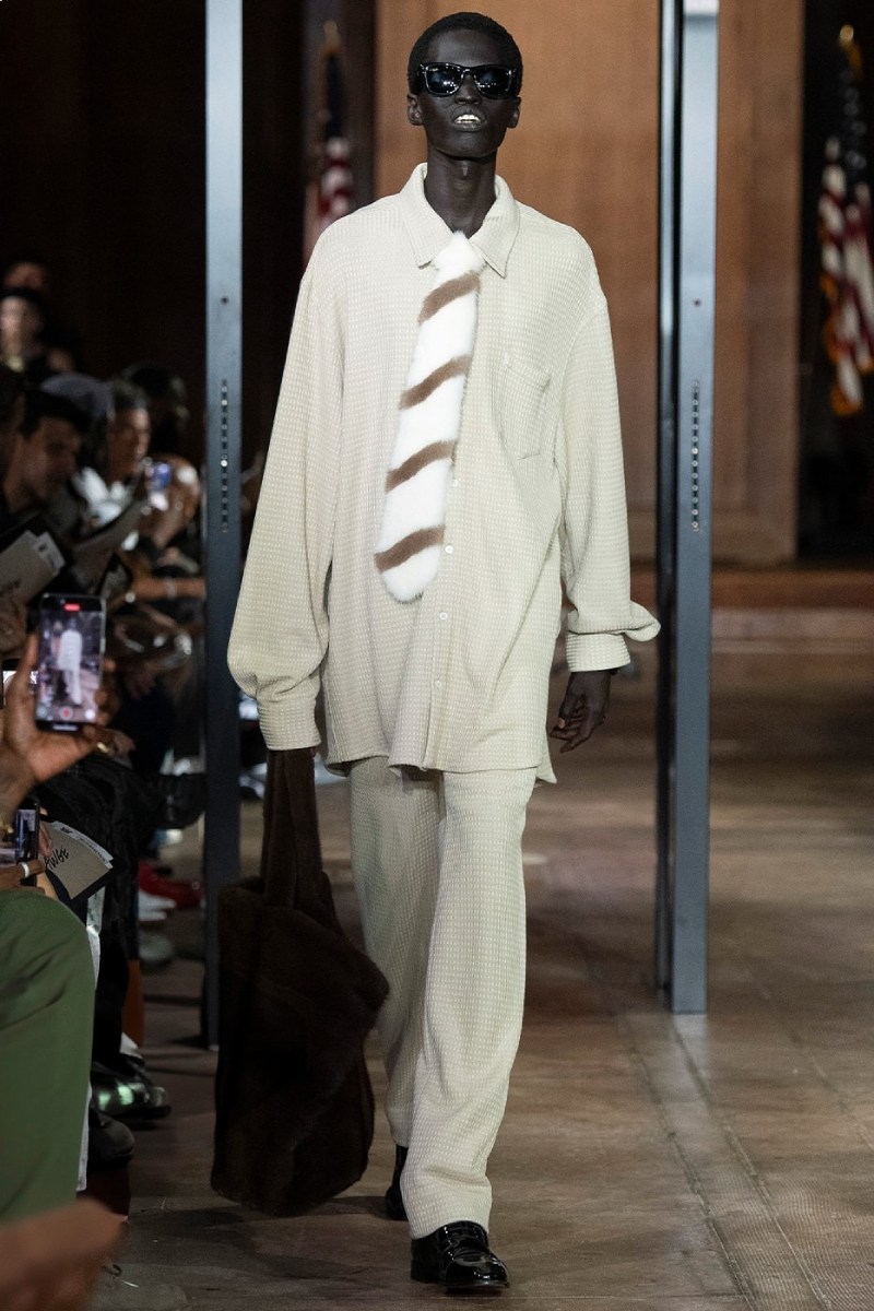 Esto, a grandes trazos, puede entenderse como el conjunto de prendas que se pueden ver en un ambiente de edificio gubernamental. Esto, claro, se debe a que él mismo tuvo que atravesar un proceso de juicio recientemente; y resuena de maravilla con el comentario social de la cultura negra que transmite. También, es un guiño a su propio estilo. Ese que ha incorporado elementos más “clásicos” y “formales” a un léxico altamente urbano. Es un mestizaje perfecto de ambos polos; y por eso nos encanta todo. Y bueno, también vemos un nuevo repertorio de sneakers colaborativas junto a Puma (ya llegaremos a eso).