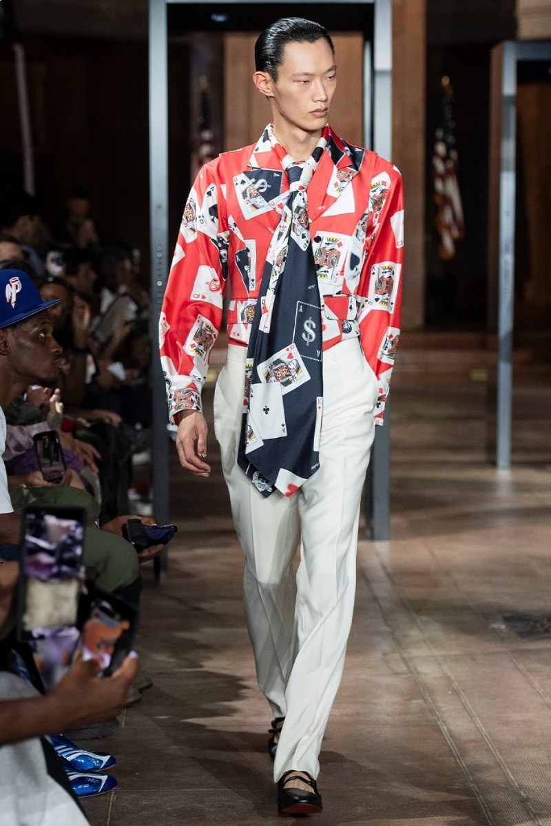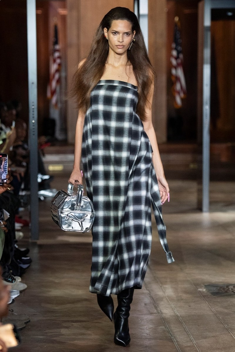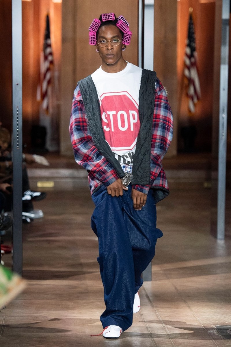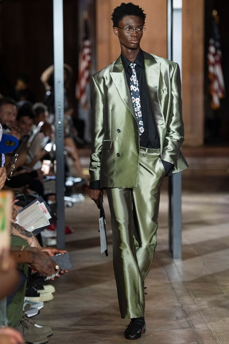 Esto, a grandes trazos, puede entenderse como el conjunto de prendas que se pueden ver en un ambiente de edificio gubernamental. Esto, claro, se debe a que él mismo tuvo que atravesar un proceso de juicio recientemente; y resuena de maravilla con el comentario social de la cultura negra que transmite. También, es un guiño a su propio estilo. Ese que ha incorporado elementos más “clásicos” y “formales” a un léxico altamente urbano. Es un mestizaje perfecto de ambos polos; y por eso nos encanta todo. Y bueno, también vemos un nuevo repertorio de sneakers colaborativas junto a Puma (ya llegaremos a eso).