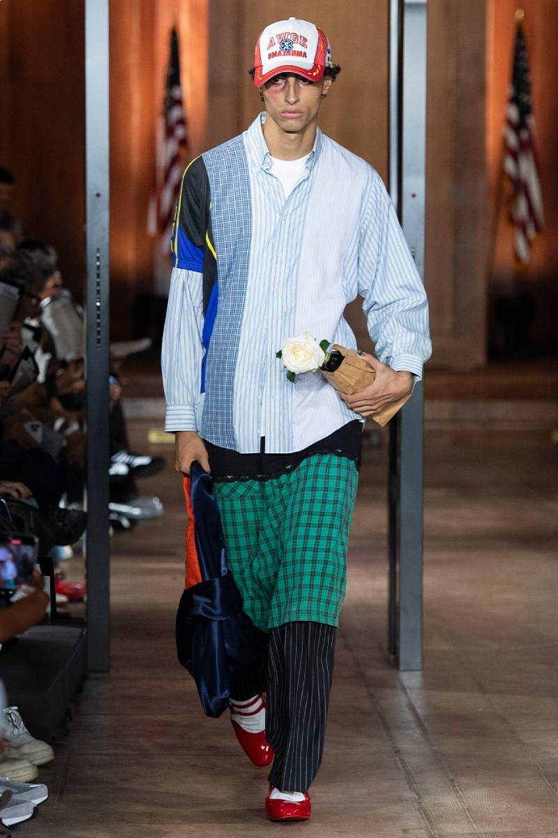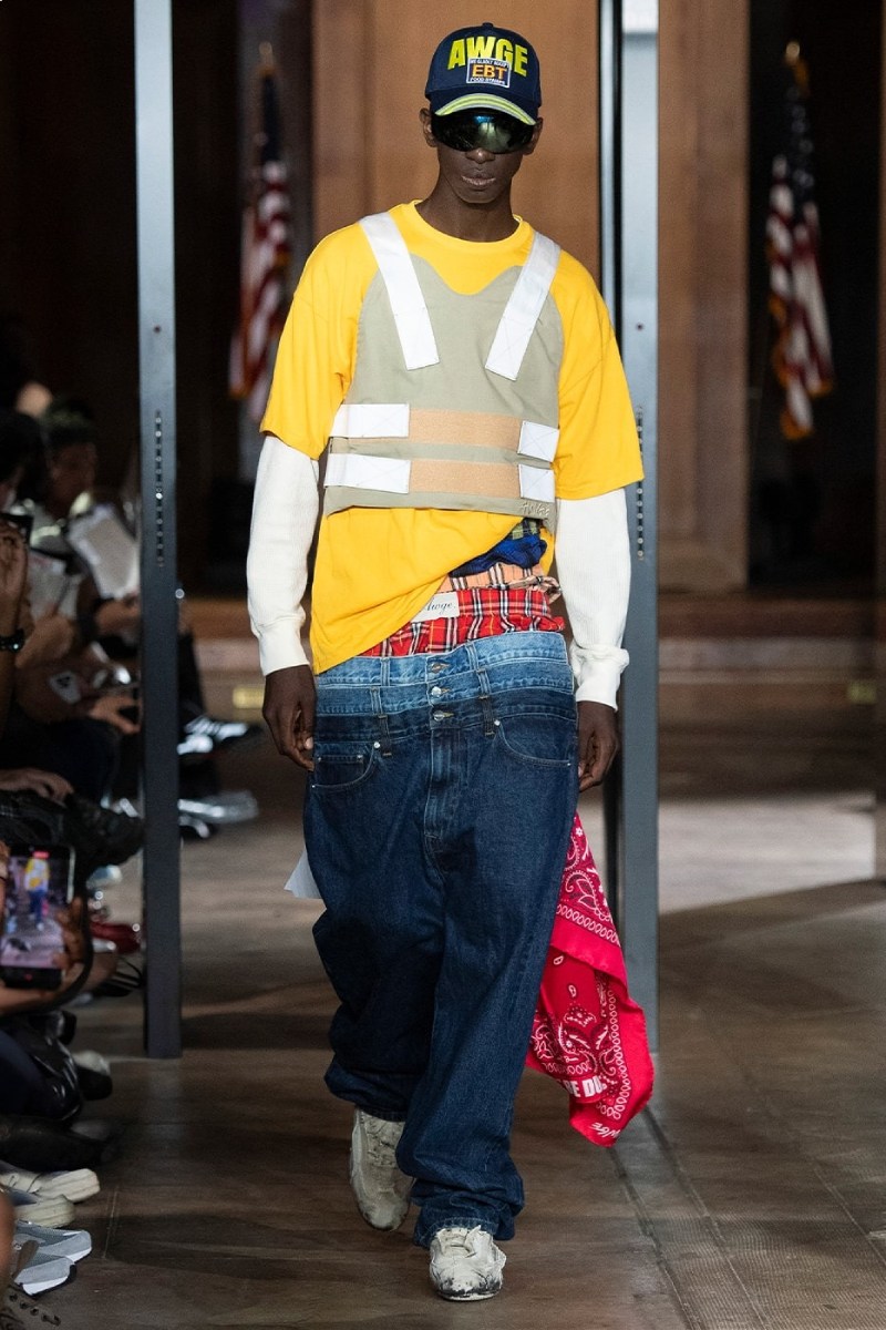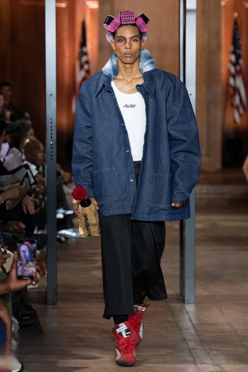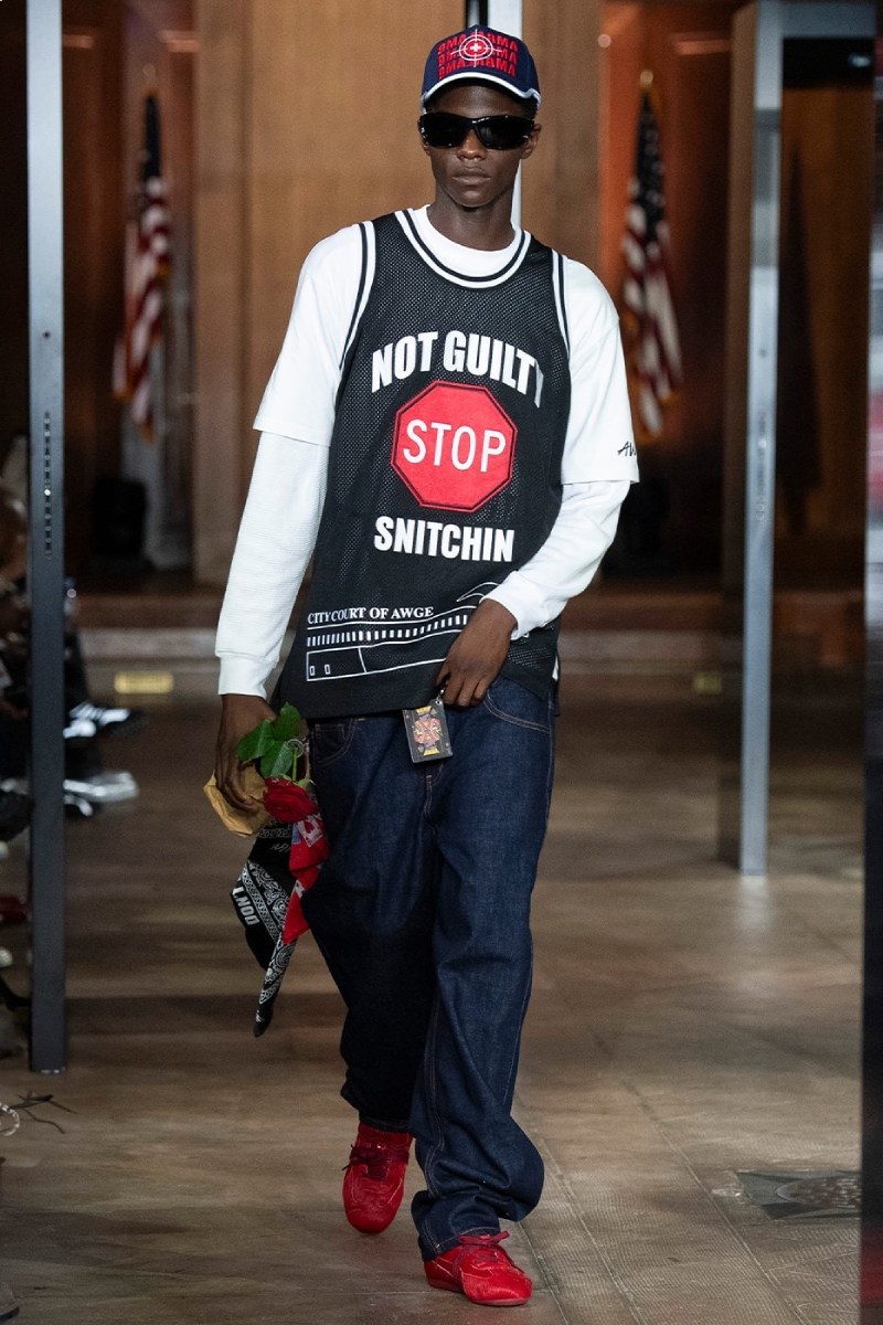Para Awge ss26, Rocky explora cómo la cultura y el armario de los ghettos de Norteamérica se han convertido en la definición del lujo moderno; pero no cómo una celebración. Al contrario; este mensaje es el de denuncia ante la apropiación. Y, para amplificar este mensaje, inyecta toques de vanguardia y diseño mucho más elevado a lo que se entiende como ropa de calle. También, como punto de balance (o de inri a este aspecto), el otro gran componente de la colección viene de lo que él llama “estilo institucional”.