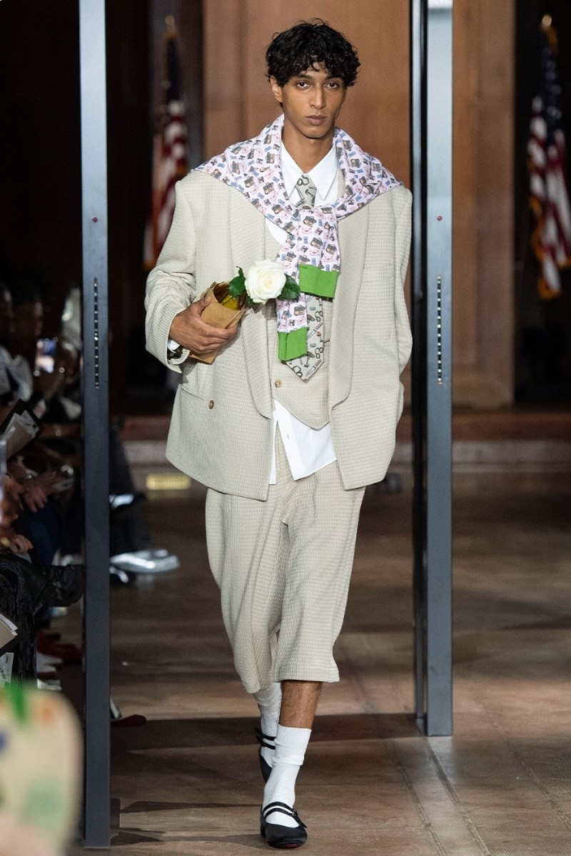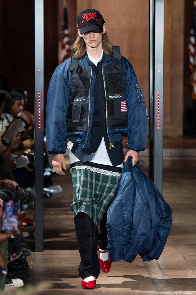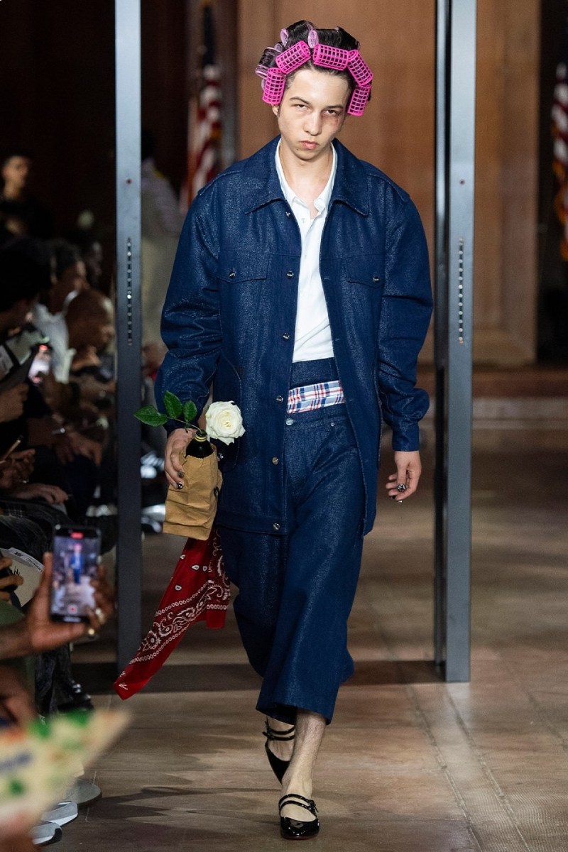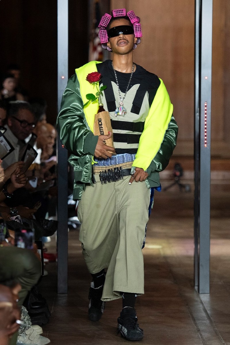 Para Awge ss26, Rocky explora cómo la cultura y el armario de los ghettos de Norteamérica se han convertido en la definición del lujo moderno; pero no cómo una celebración. Al contrario; este mensaje es el de denuncia ante la apropiación. Y, para amplificar este mensaje, inyecta toques de vanguardia y diseño mucho más elevado a lo que se entiende como ropa de calle. También, como punto de balance (o de inri a este aspecto), el otro gran componente de la colección viene de lo que él llama “estilo institucional”.