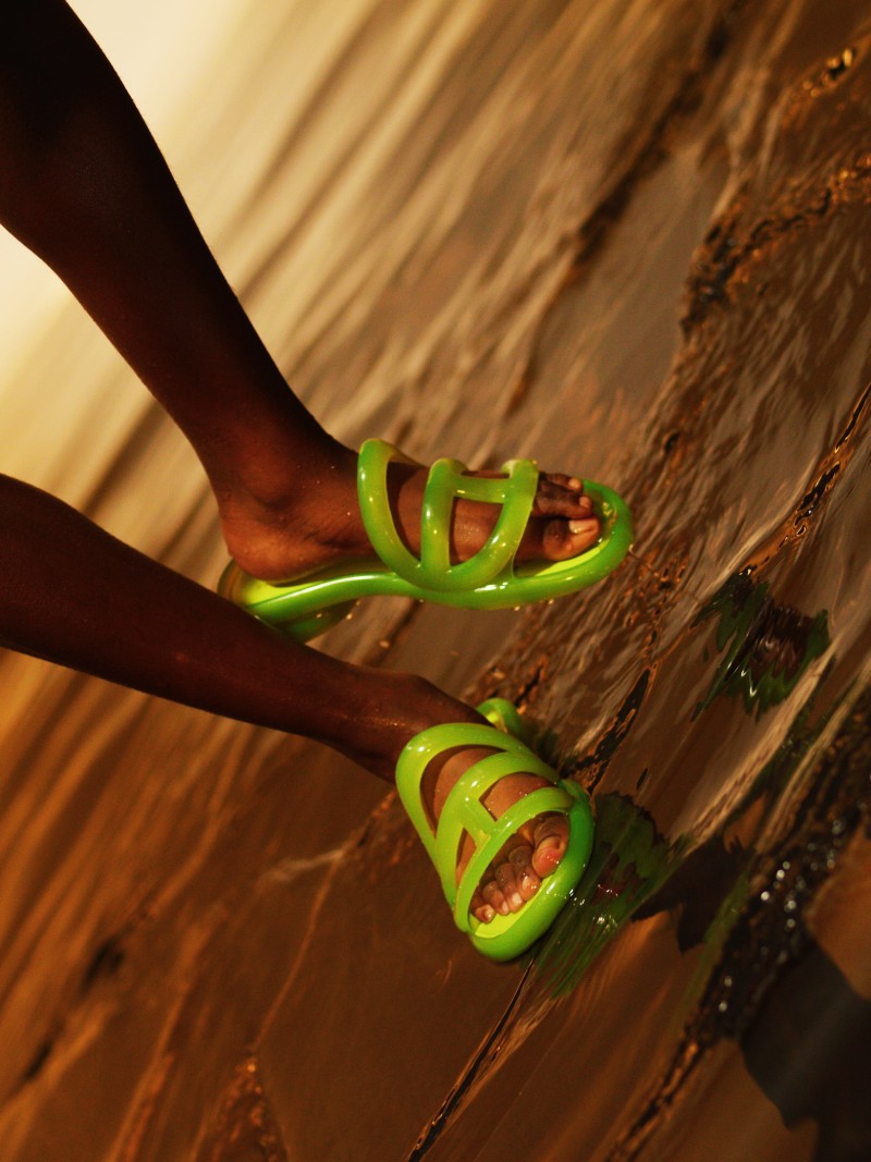 Y claro, al ser una compañía de sandalias, algo se tenía que hacer en este terreno. La colabo de Melissa X Telfar también presenta en estos nuevos tonos sus siluetas exclusivas. Al igual que los bolsos, estas sandalias se construyen de Melflex (que si no lo sabíais, huele a chicle) y presentan una construcción tubular que serpentea por todo el pie. Estos tubos se unen en el empeine, formando el logo T de la firma neoyorquina, para darnos un punto de flex en nuestros looks de verano.
