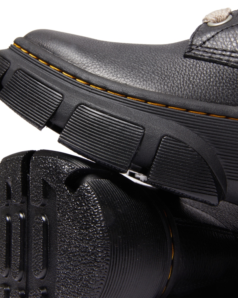 Ambos modelos del nuevo drop de Dr. Martens X Rick Owens rescatan señales de identidad clave como las costuras amarillas en la mediasuela y la trabilla en el talón. De igual manera, estas nuevas 1918 también se construyen con la suela DMXL.