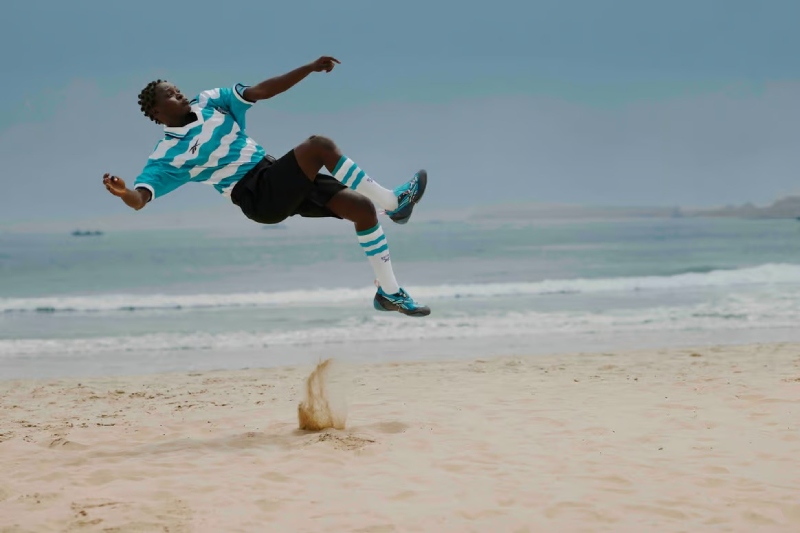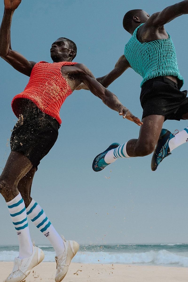 Siguiendo con el tema de la indumentaria deportiva, Botter X Reebok LTD presenta una camiseta de fútbol a rayas, que emulan las olas y la espuma del mar. Aportando un componente retro, la pieza se corona con un cuello camisero con mangas a contraste. También tenemos un polo técnico y futbolero, construido en negro y decorado un con Vector en formato XXL. La colección de ropa cierra con camisetas oversized acentuadas con cortes dramáticos y esenciales running de compresión en colores vivos.