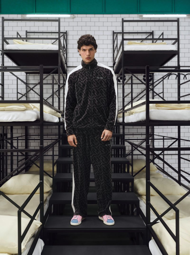 La cápsula de Puma X El Juego del Calamar reinventa el modelito de chándal track verde con rayas blancas a través del icónico T7 de la firma. Lo especial de esta versión es que el conjunto se acentúa con un monograma especial y viene acompañado de dos siluetas exclusivas de sneakers. Ah, y también se ofrece una versión en negro súper elevada.
