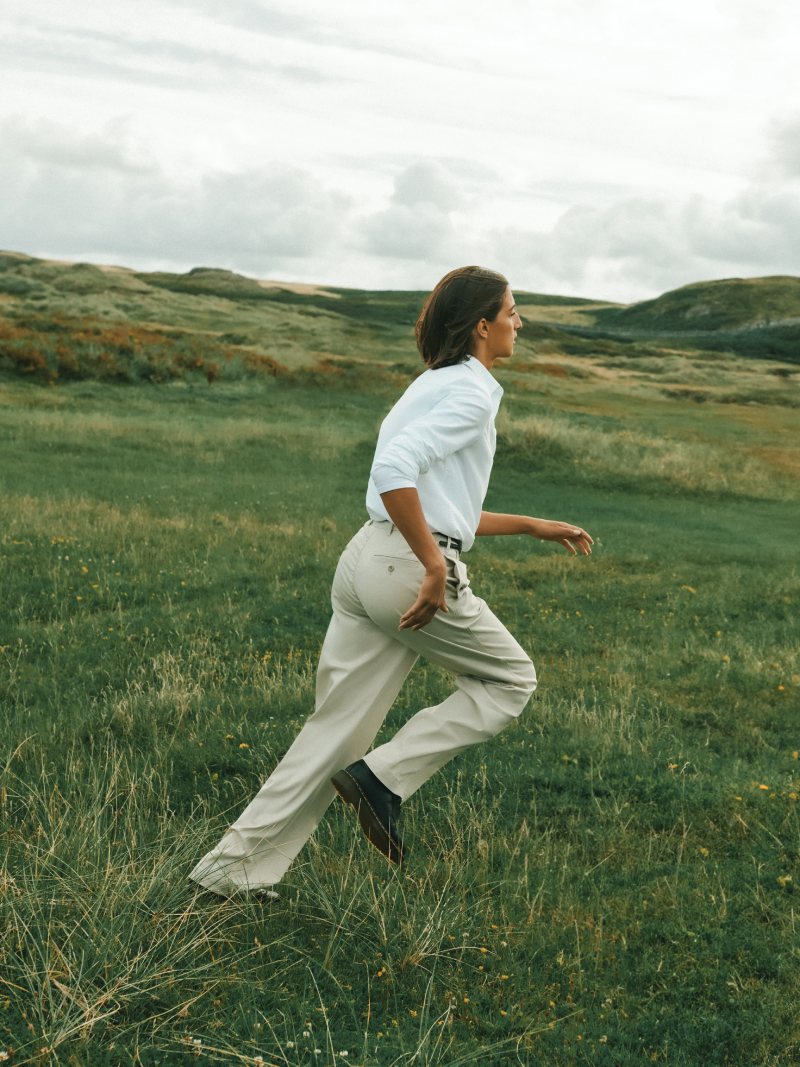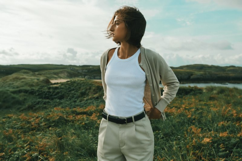 Para la sección de mujer de esta colección, Dockers apuesta por relajar el estilo smart a través del juego de capas con prendas más casuales. La base de todo es un pantalón de pinzas muy clásico y de tiro alto, que se lleva con una camisa de botones de lo más convencional. La magia está en usar la camiseta de tirantes como primera base y relajar el look. También, esta colección apuesta por el cárdigan cropped y el jersey fino para sustituir a la oxford en el conjunto a capas.
