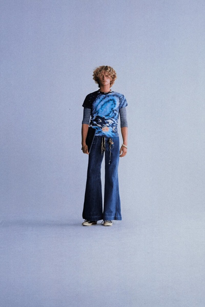 Para hacerle justicia a los arquetipos de ERL FW24, hay que diseccionar cada uno como una sección independiente. Pero nos podemos sacar a los normies de primeros, que son los que tenían un estilo más o menos “normal”. Los chicos que no eran ni raros ni populares se muestran dentro de la colección como lo que eran: los chavales normales. Aquí, su armario se compone de vaqueros, camisetas gráficas, camisas de cuadros, polos, cargos khaki y todo lo demás.