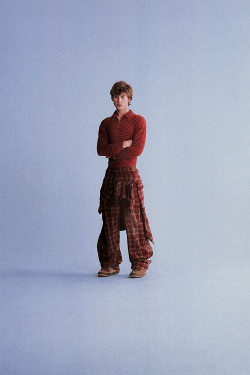Sin embargo, se les da una vuelta a estas prendas a través de una revisión de sus siluetas: los pantalones se presentan con cortes característicamente holgados, las camisetas son ceñidas y cropped (puestas en layering con camisetas de rayas aún más estrechas). Aquí, los boxers de cuadros se convierten en acentos para la cintura de gran protagonismo y los cuadros de las camisas también se reflejan en pantalones de estilo pijama. Todo esto es una canalización moderna del catálogo Abercrombie (también en el terreno femenino) y a nosotros nos encanta.