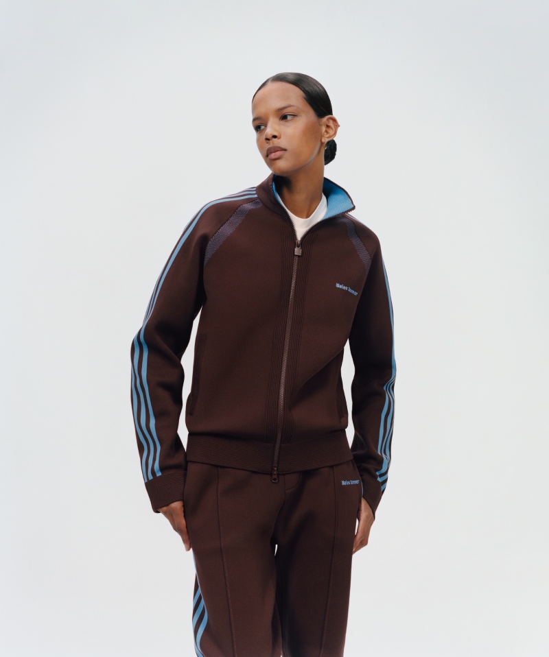 La selección de prendas de adidas Originals by Wales Bonner apuesta por jugar en terrenos familiares. Los principales protagonistas de la colección son los icónicos tracksuits de adidas, actualizados con pequeños detalles y a juego con las zapatillas terracota. Estos conjuntos de corte regular se acentúan con bandas diagonales en los hombros y el distintivo Wales Bonner en el pecho.