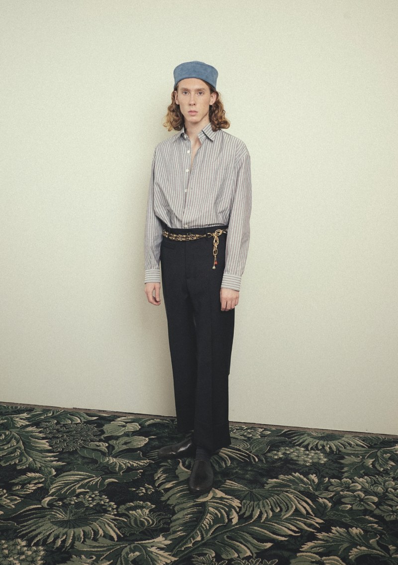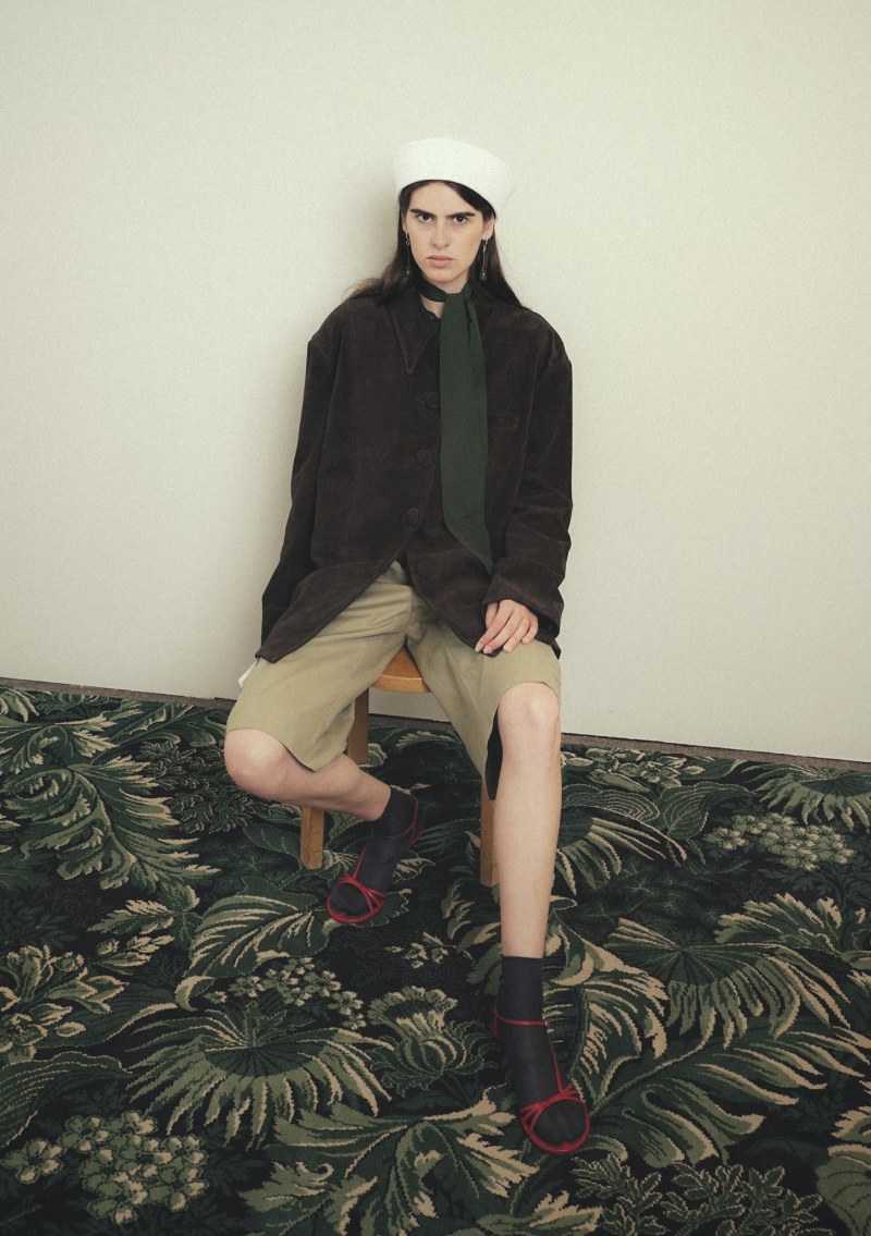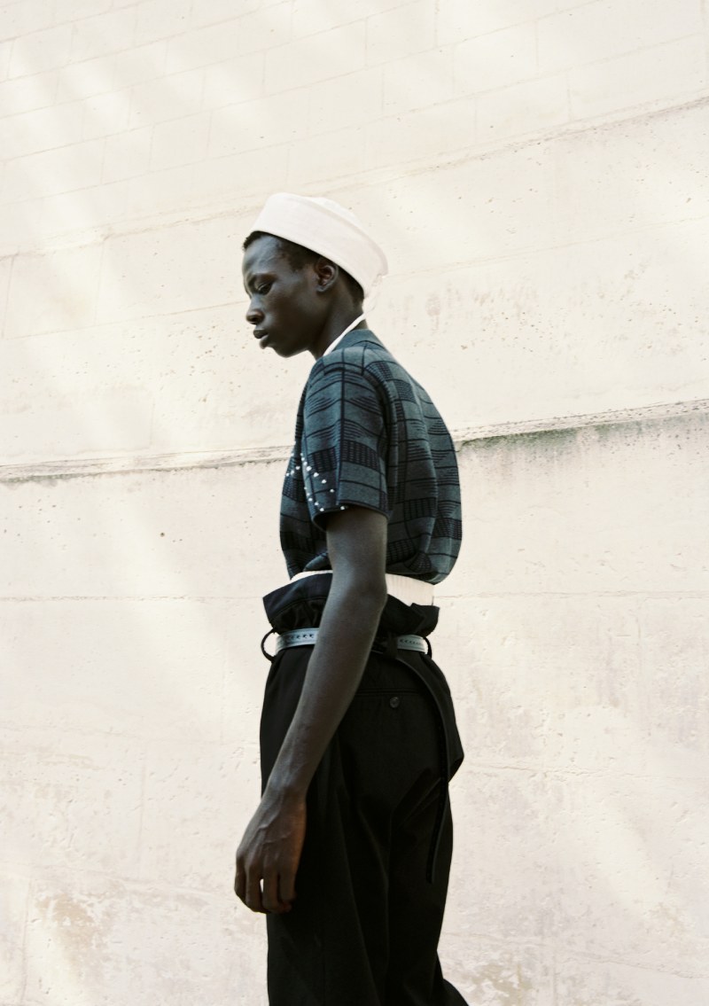 ¿Accesorios? Aquí es donde más se ve el punto marinero dentro de Namacheko ss26. Los gorros blancos son un late motif que se ve a lo largo de toda la colección; pero también hay detalles mucho más sutiles, como collares y cinturones de cadenas de ancla. También vemos una silueta de bolso triangular; que puede perfectamente ser una caja de herramientas. Y, en cuanto a calzado, destacan sandalias de tiras delicadas para mujer y zapatos de vestir clásicos para el lado masculino. Y todo se mueve en un minimalismo que es de todo menos aburrido.