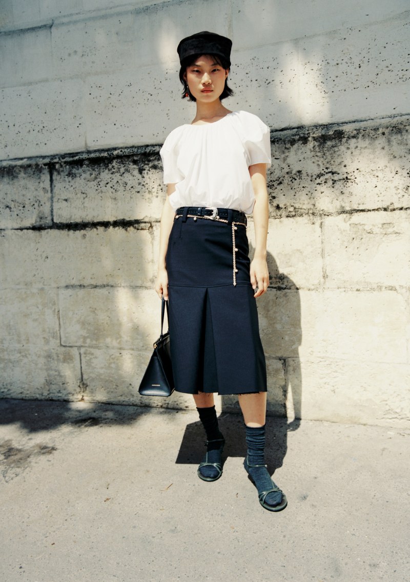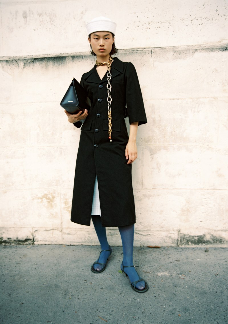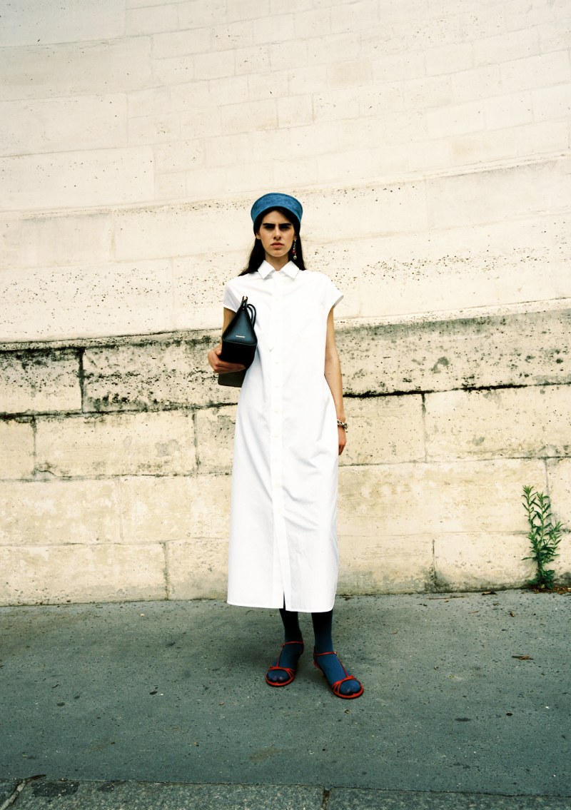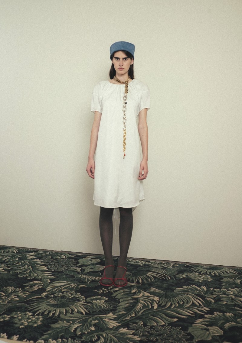 ¿Accesorios? Aquí es donde más se ve el punto marinero dentro de Namacheko ss26. Los gorros blancos son un late motif que se ve a lo largo de toda la colección; pero también hay detalles mucho más sutiles, como collares y cinturones de cadenas de ancla. También vemos una silueta de bolso triangular; que puede perfectamente ser una caja de herramientas. Y, en cuanto a calzado, destacan sandalias de tiras delicadas para mujer y zapatos de vestir clásicos para el lado masculino. Y todo se mueve en un minimalismo que es de todo menos aburrido.
