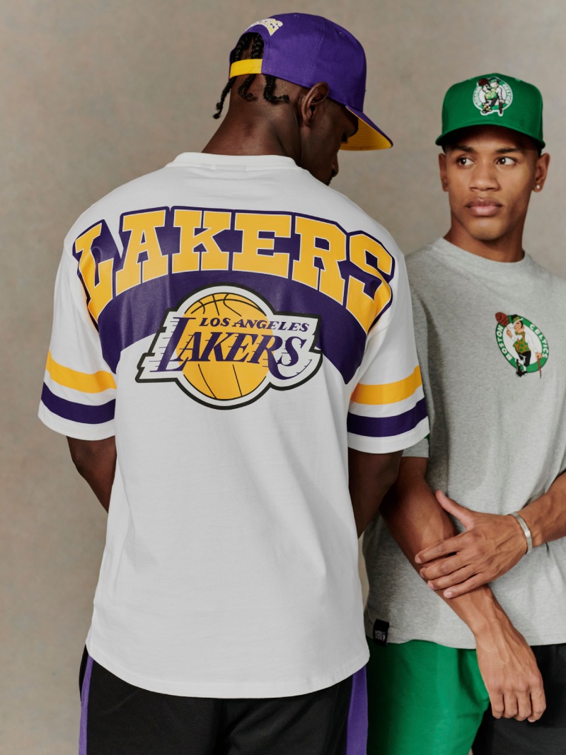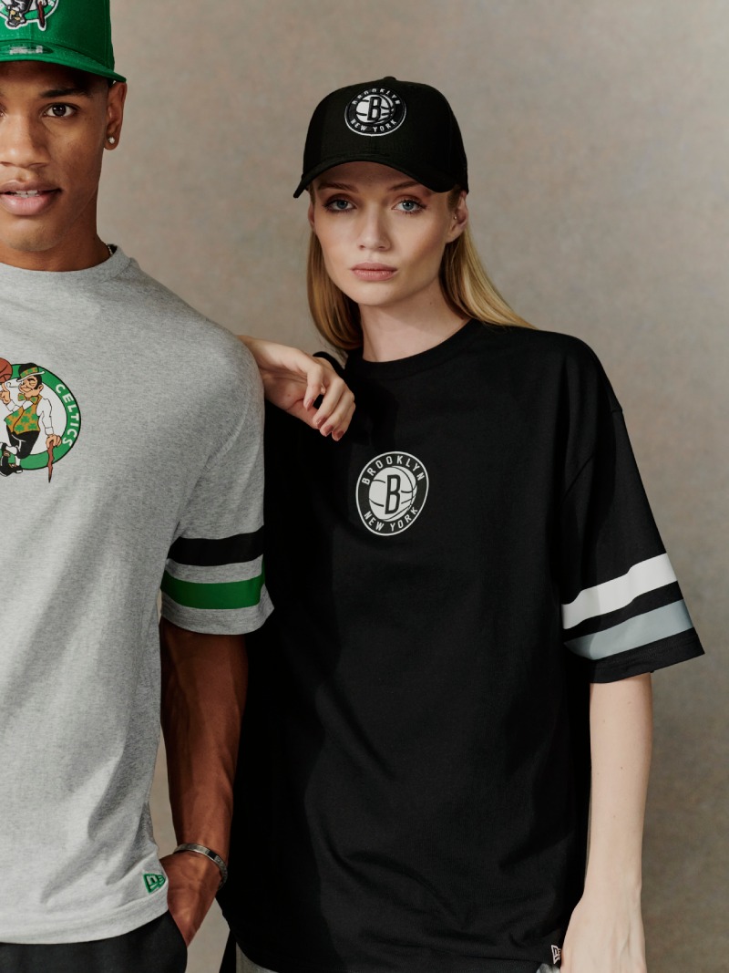 Para los amantes de los L.A Lakers, New Era X NBA presenta una gorra snapback 9FIFTY púrpura con detalles a contraste en dorado y el logo del equipo sobredimensionado en todo el centro. Rematando del look, tenemos un bordado varsity en la parte trasera con el nombre del equipo. La inspiración college sigue con la camiseta, decorada con franjas en las mangas y un logo varsity en la espalda. Esta misma fórmula se repite para la gorra y camiseta de los Boston Celtics, con su paleta verde, gris y negro. Y también para los Brooklyn Nets, con sus prendas negras decoradas con blanco y gris.