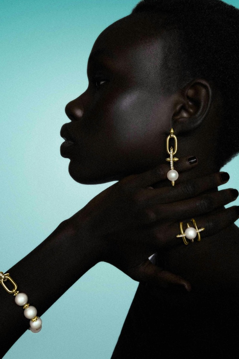 La nueva entrega de joyas de lujo (ideales para un look de high street) de Tiffany X Pharrell Williams se expande para esta temporada. La nueva entrega rescata los eslabones con pinchos de la línea debut, diamantes y todo, y los decora ahora con perlas de río, profundizando el motif marino y acuático de la colección Titan y confirmando que Pharrell es un creativo verdaderamente multidisciplinar.