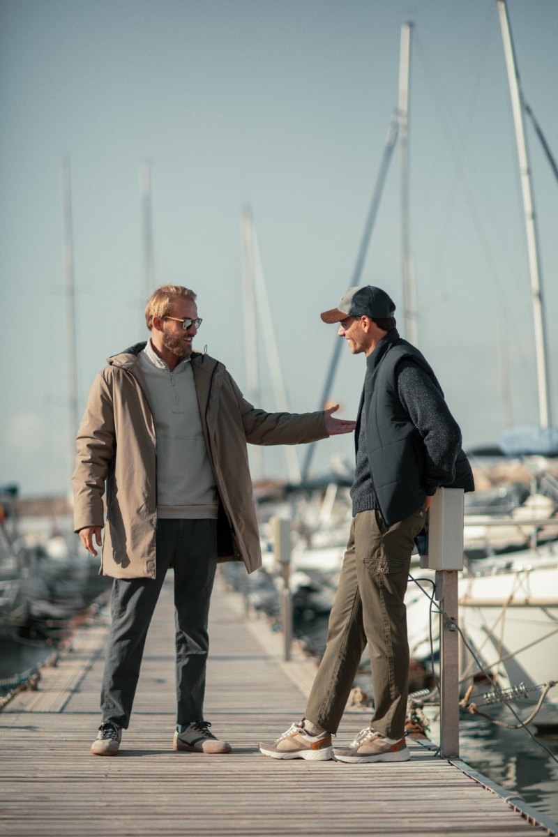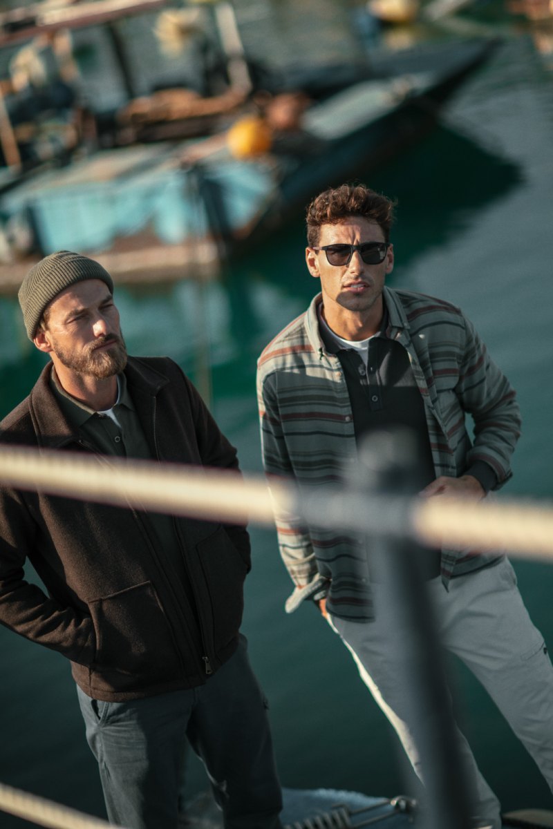 La nueva colección de looks de estilo pescador que propone Boston se basa en un armario atemporal que celebra la vida marítima. Como piezas estrella de la colección, tenemos chaquetas y cazadoras técnicas resistentes al agua y a los elementos, que valen tanto en tierra firme como en altamar. También, y reforzando ese punto de utilidad, tenemos cazadoras worker y chaquetones de paño.
