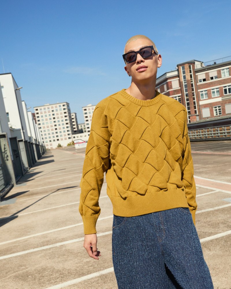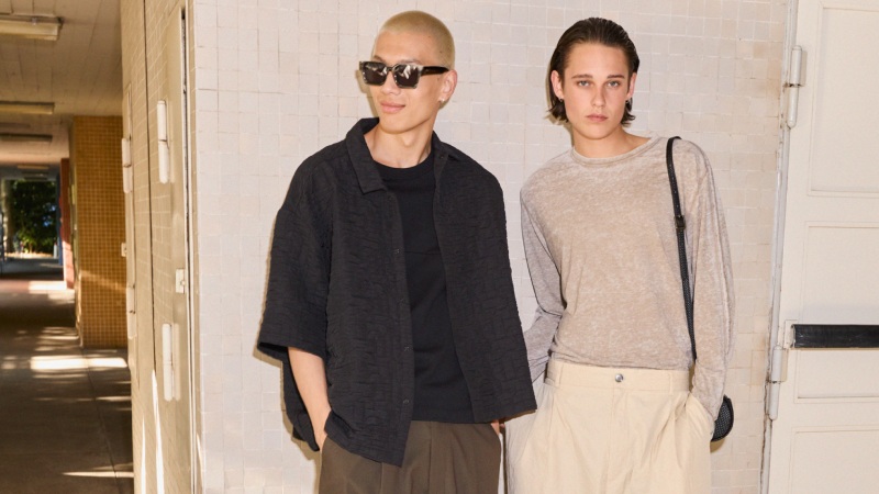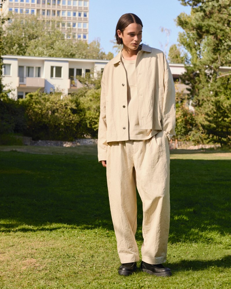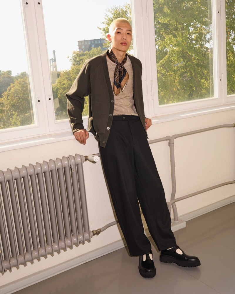 Como capas intermedias, tenemos americanas de corte relajado y solapas anchas, cárdigans de punto oversize y camisas estampadas con diseños retro o con juego de texturas. Y entre las piezas más statement, tenemos un jersey de construcción trenzada y un conjunto de trucker y vaqueros con textura arrugada. Para completar estos looks de menswear urbano, tenemos pantalones de pinzas de inspiración sartorial anchos y relajados.