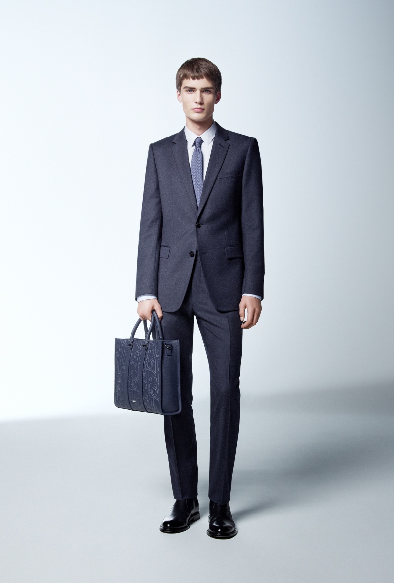 La nueva cápsula de looks de traje Dior abre con su conjunto más versátil: el traje de oficina. Sus conjuntos más estándar se componen de una americana de corte clásico, complementada por solapas finas y estilizadas y una botonadura simple. A juego, tenemos un pantalón de pinzas de corte slim; y juntos crean el traje que el hombre Dior puede ponerse para cualquier cosa. Como de costumbre, esto se complementa de camisas de botones ocultos de cuello clásico y corbatas de seda.
