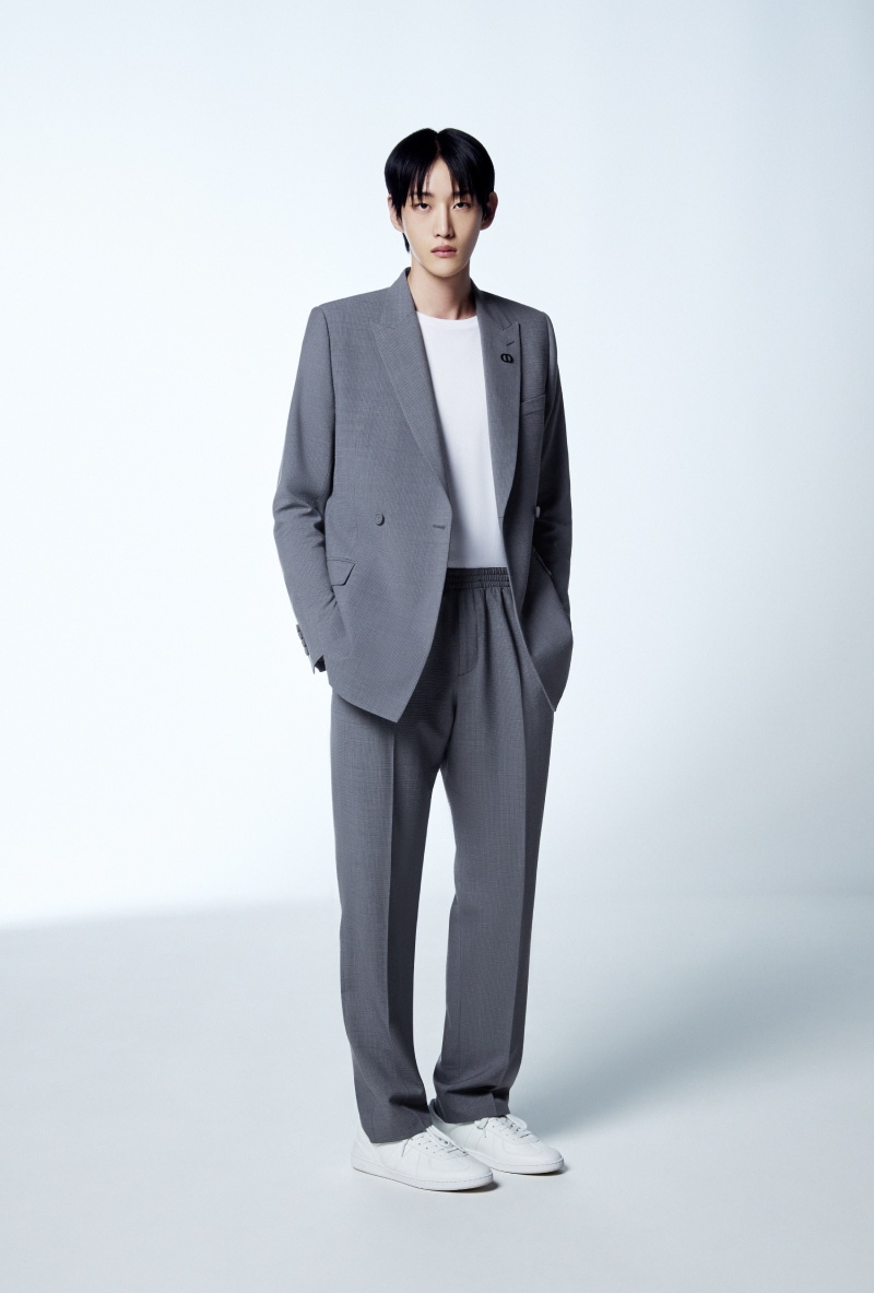 En una nota más casual, la nueva cápsula de trajes Dior presenta un conjunto que recuerda a los cortes holgados y oversize de los 80. Este traje, de lana virgen gris Dior, se eleva con solapas más anchas y una botonadura cruzada a juego con pantalones más holgados (que tienen cintura elástica). También, la clásica chaqueta con tira cruzada de Kim Jones se encuentra presente en la cápsula, combinada con un pantalón descoordinado y sneakers. Y, como conjunto más casual y relajado, el look de inspiración workwear típico de sus colecciones se reimagina en lana de traje.