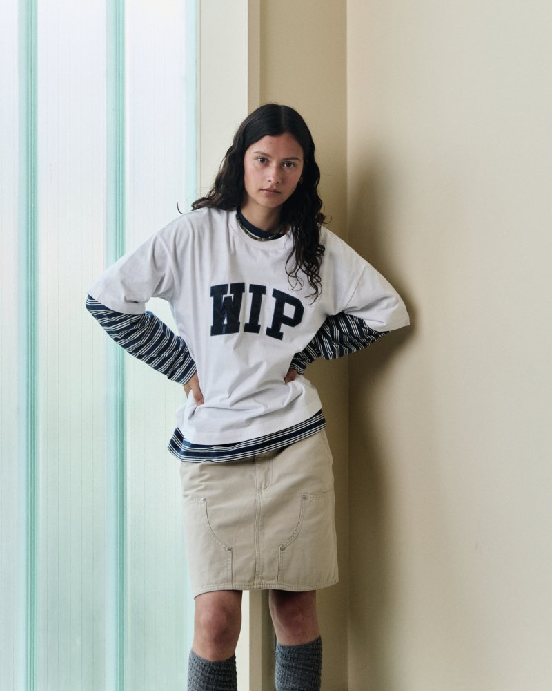 La colección Carhartt Wip Mujer ss25, pese a lo que nos indicaría la lógica, no es un armario de temporada cargado de prendas de inspiración workwear al uso. Sí, hay una base de este Adn muy presente en la colección; pero eso solo sirve como punto de partida para inspirar un fondo de armario mucho más “normie” y despreocupado. Eso sí, la textura y el layering tienen el spotlight.