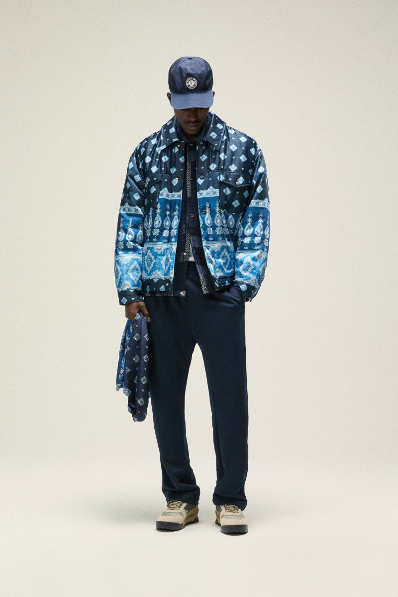 Abriendo este repertorio, tenemos una gran selección de piezas de outerwear, bastante statement, acentuadas con estampados de bandana a parches sobre nylon de gran calidad. El theme de la inspiración japonesa de estos estampados se expande a un terreno de sastrería, con híbridos de americana y kimono, sudaderas y cazadoras.