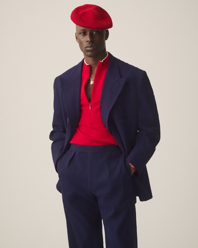 Para entender Aimé Leon Dore SS25 hay que ir desde lo más formal a lo más casual. Empezando por la sastrería, la nueva colección de ALD presenta trajes de corte casual en telas ligeras y vaporosas de botonadura simple y solapas anchas. Como alternativas más clásicas, tenemos un conjunto de lana gris impecable; pero salen a relucir variantes más interesantes, como el traje de raya diplomática blanco o el verde limón.