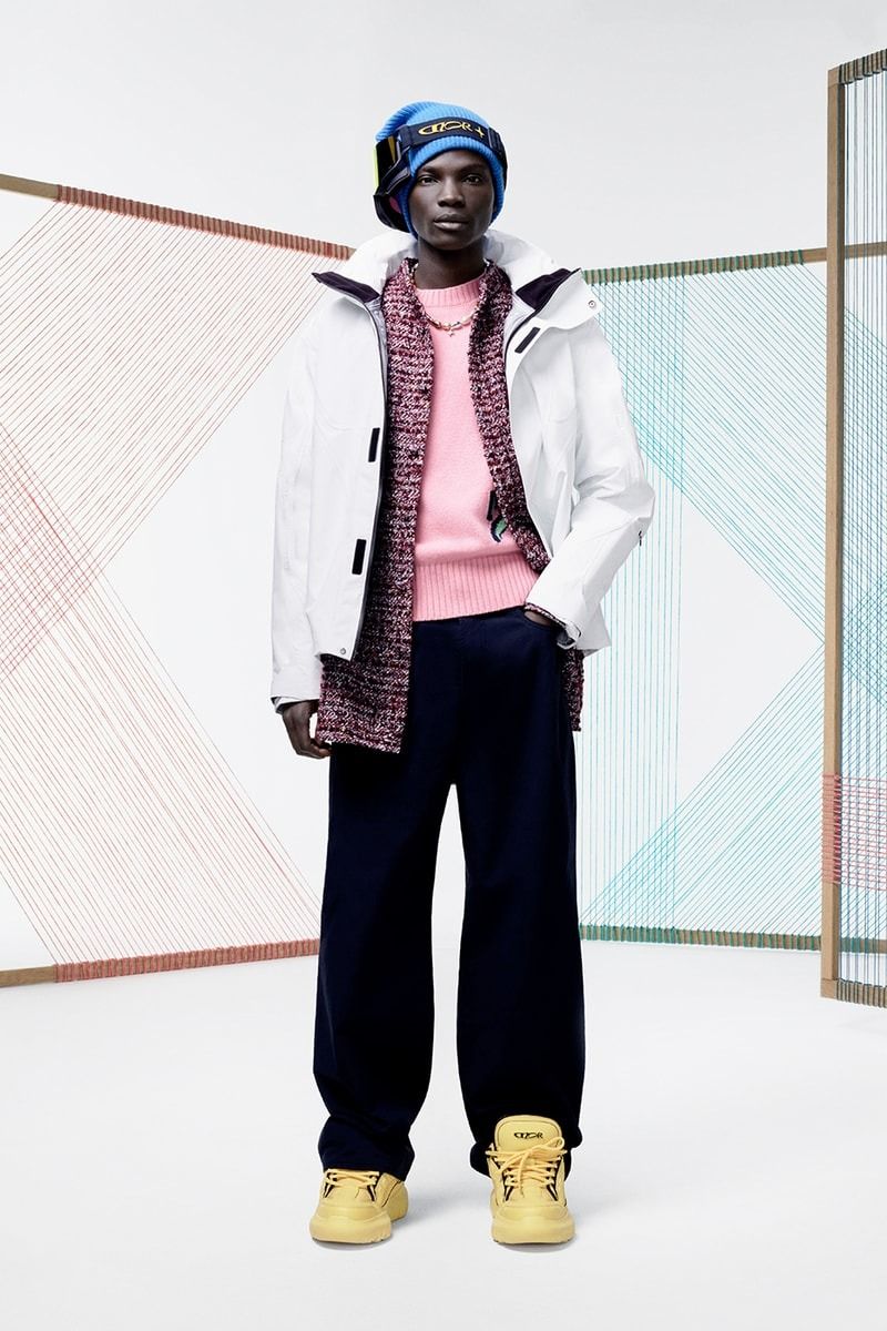 Siguiendo la línea urbana y sofisticada de Jones, la colabo de Dior X Lewis Hamilton presenta también sobrecamisas de lana ultra minimalistas con jerséis y cárdigans monocromáticos como primeras capas esenciales. Pero aquí también hay un punto técnico, con piezas de inspiración snowboarder cargadas de color y disposiciones nostálgicas, pantalones convertibles y accesorios para la nieve, como tablas, cascos y goggles.