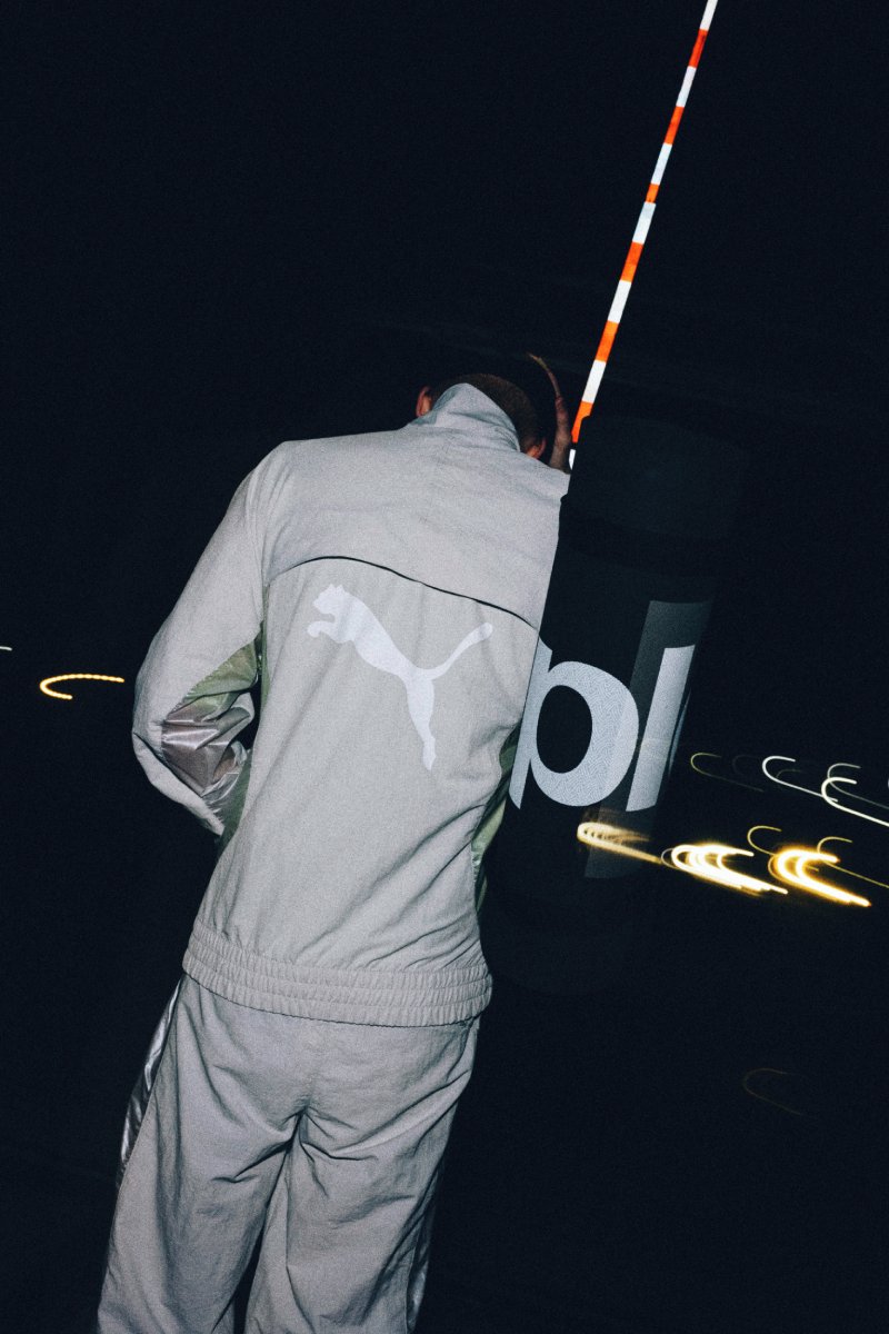 En cuanto a la ropa, Puma X Pleasures SS24 pone un especial enfoque en los conjuntos de tejido técnico. La estrella de esta colección es un set de cazadora y pantalón de nylon gris claro decorado con detalles reflectantes y logos tono sobre tono. Fiel al carácter urbano que los une, vemos una silueta de corte oversize esencial en cualquier armario. De igual manera, la colección propone también un jersey crewneck con un gráfico solarizado de una chica y logotipos en negro.