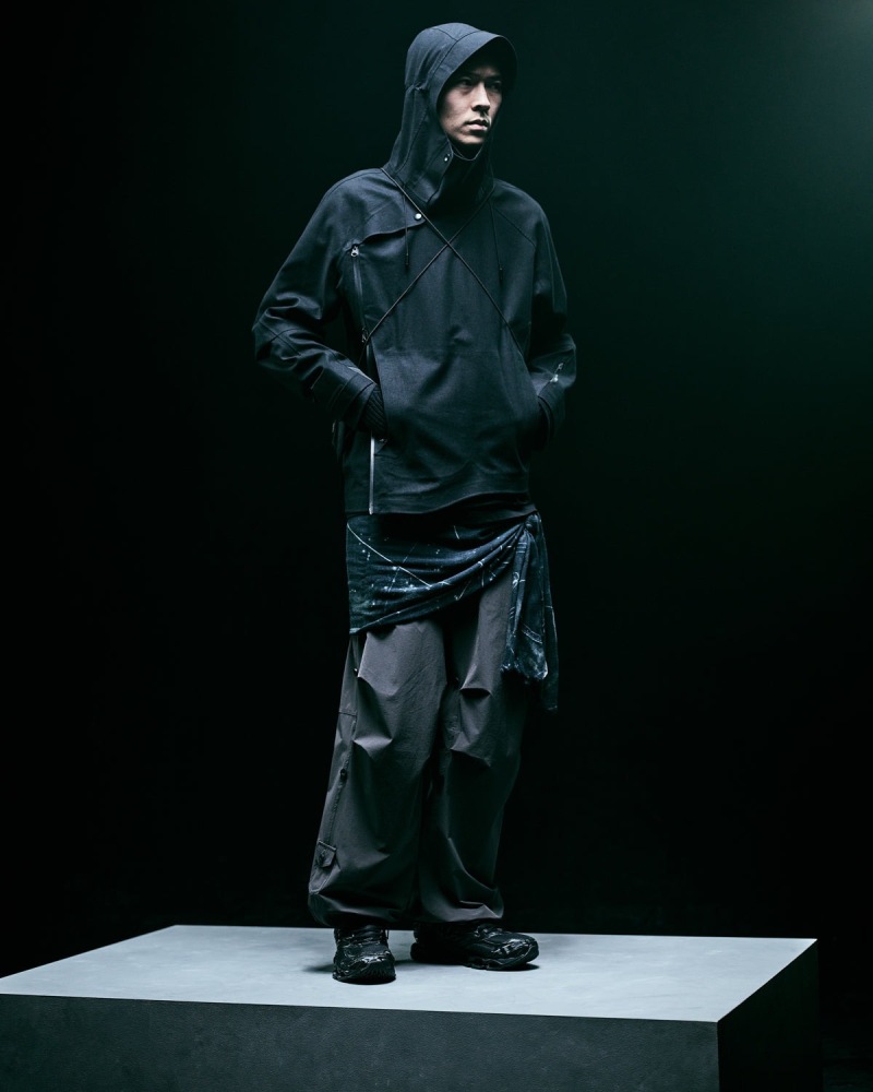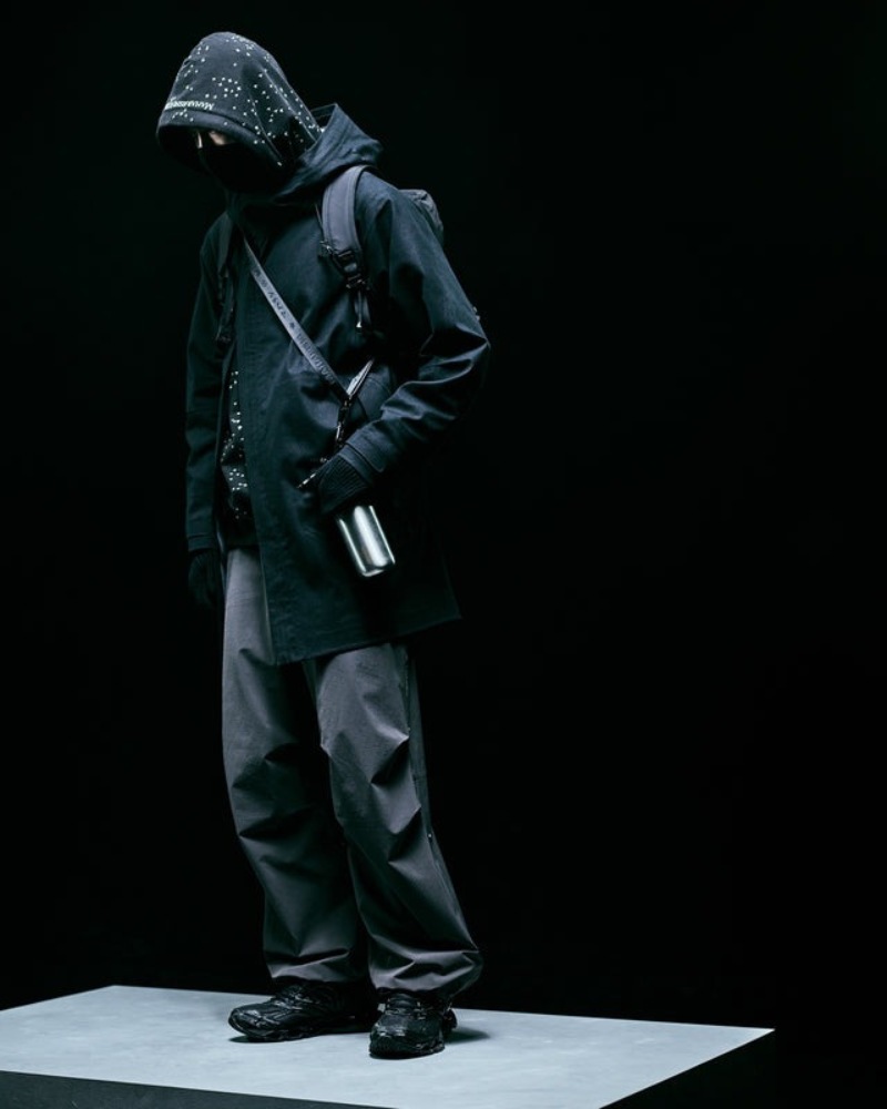 Siguiendo esa misma línea de techwear altamente funcional, Maharishi X Everything is Recorded tiene también sudaderas acolchadas y pantalones cargo asimétricos de corte baggy. En un lado más dressy, tenemos sobrecamisas reinventadas con un toque de gorp core y nuevas versiones de los Snopants, un staple de Maharishi desde los 90.