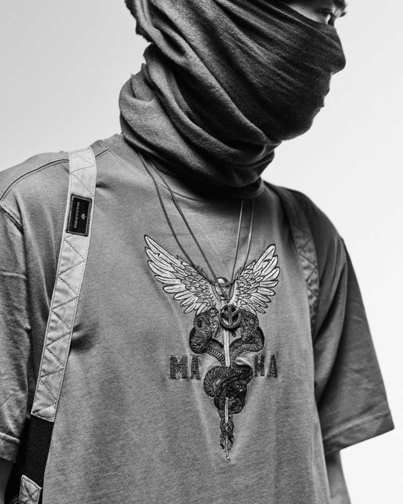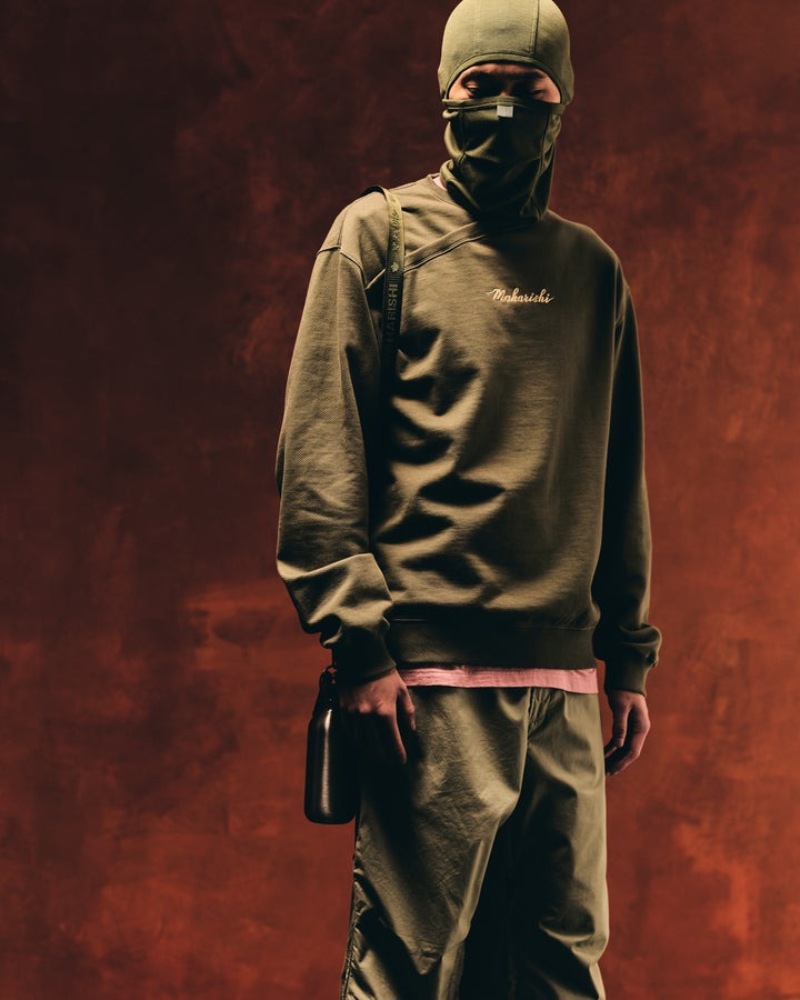 El terreno más esencial de Maharishi y Everything is Recorded es de todo menos básico. Tenemos sudaderas construidas a mitades con bordados souvenir, camisetas gráficas (bordadas también) y un crewneck de construcción asimétrica. Siguiendo su línea de indumentaria militar y funcional, la balaclava se convierte en el complemento ideal para estos conjuntos, a juego de bolsos multibolsillo.