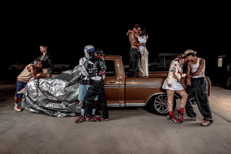 Y bueno, su segunda cápsula no deja que baje el listón en ningún momento. Su entrega para FW24 sigue profundizando en esta estética de deportes automovilísticos con toques urbanos y vanguardistas bastante interesantes. Solo que ahora, el tema del distressed y el desgaste cobran aún más protagonismo.