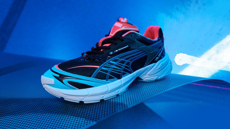 Abriendo esta nueva colección de PUMA X BMW M Motorsport tenemos un update súper interesante de la silueta Velophasis. Esta versión colaborativa presenta una base negra y se acentúa con líneas en azul neón a lo largo de todo el upper. En el área del empeine, tenemos detalles en rojo y el tricolor de BMW M como detalle en las agujetas, a junto con una buena dosis de branding.