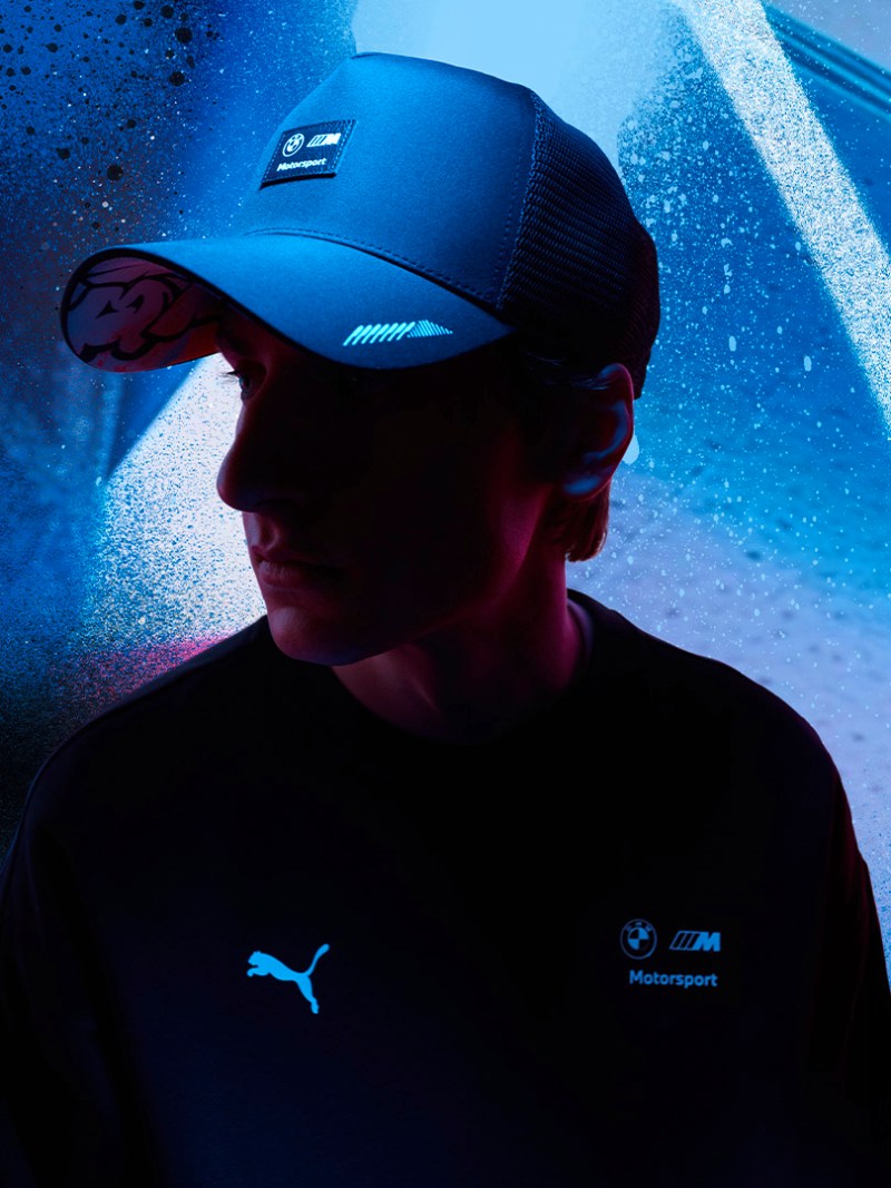 En el terreno más esencial, la nueva cápsula de PUMA X BMW M Motorsport presenta una Graphic Tee con diseño BMW MMS en típica tipografía de arte callejero, ofrecida en blanco o negro. Y en el lado de los accesorios, tenemos una gorra estilo camper a juego.