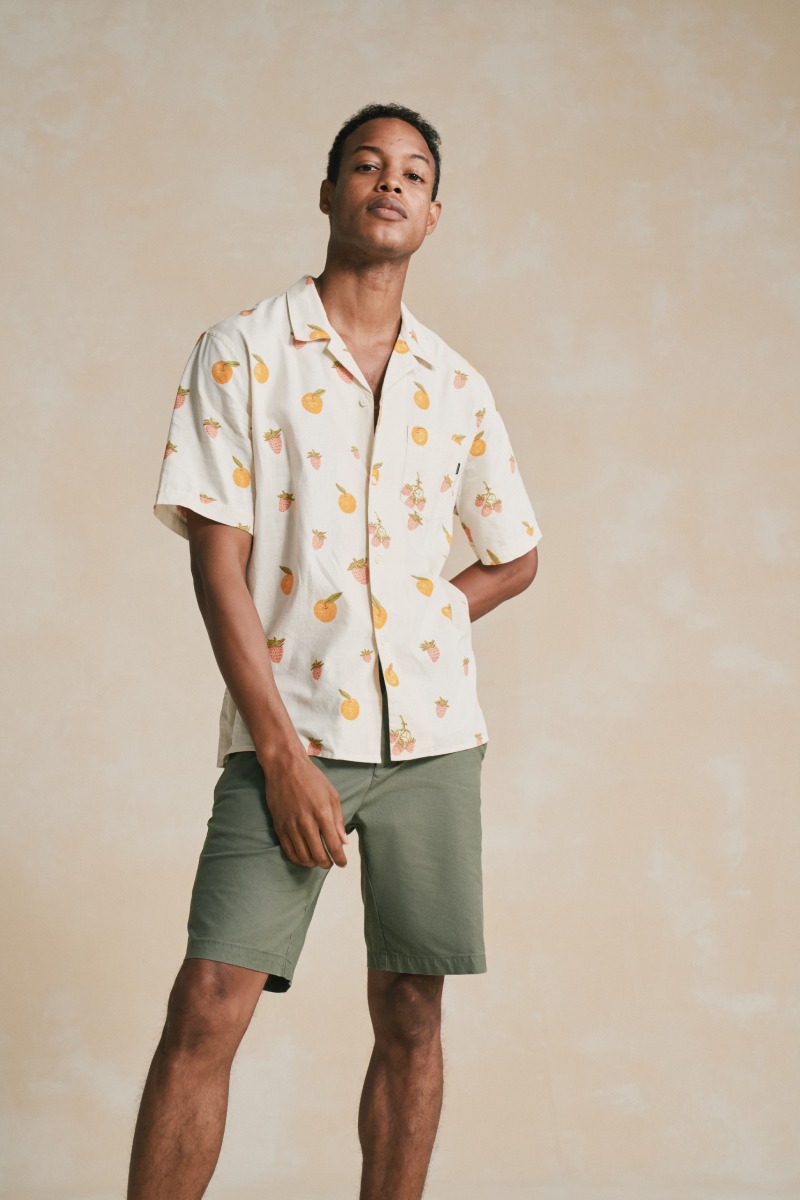La gran apuesta de chico con los pantalones de lino a modo de chino. Estos son como sus khakis de toda la vida, pero mucho más frescos y ligeros. También, podemos encontrar bermudas de corte clásico para cuando el calor sea aún más potente. Y, para completar los looks, tenemos camisas estilo Oxford y de cuello camp con manga corta para completar los looks.