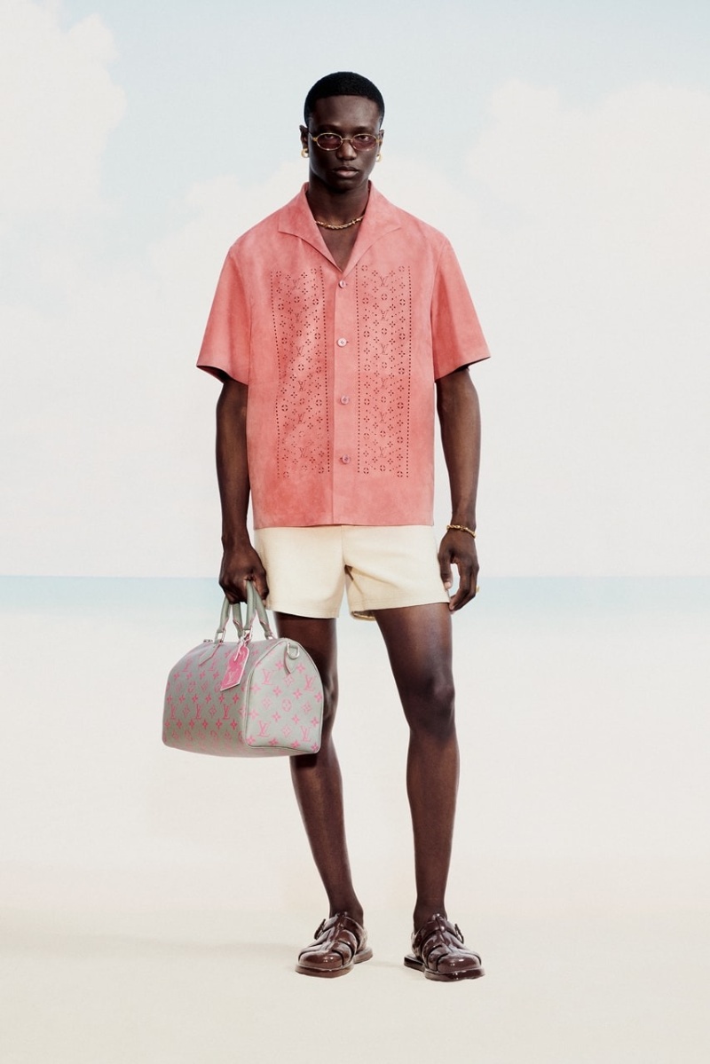 Louis Vuitton Pre-Fall 2025, aparte de ser un armario vacacional, es un estudio sobre este mestizaje de culturas y de su indumentaria tan característica. De hecho, muchos de los elementos del armario menswear tradicional vienen de este periodo, que ahora se reinterpreta bajo la óptica del dandy de Vuitton.