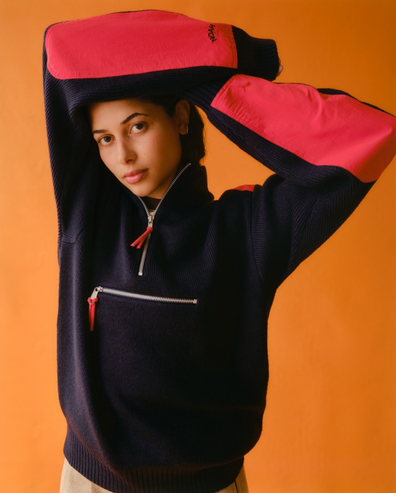 El resto del armario de la nueva colección de Puma X Noah siguen la misma línea entre estilo clásico y sport, ofreciendo conjuntos esenciales de temporada en paletas neutrales. Para los amantes de la logomanía, tenemos un polo en jacquard lleno de los gatos en azul navy. Una impecable prenda declaración que se complementa con una chaqueta acolchada y quilted en lona de nylon y pantalones de sarga. Y como punto más de sport, tenemos un half-zip en azul marino con detalles en rojo.